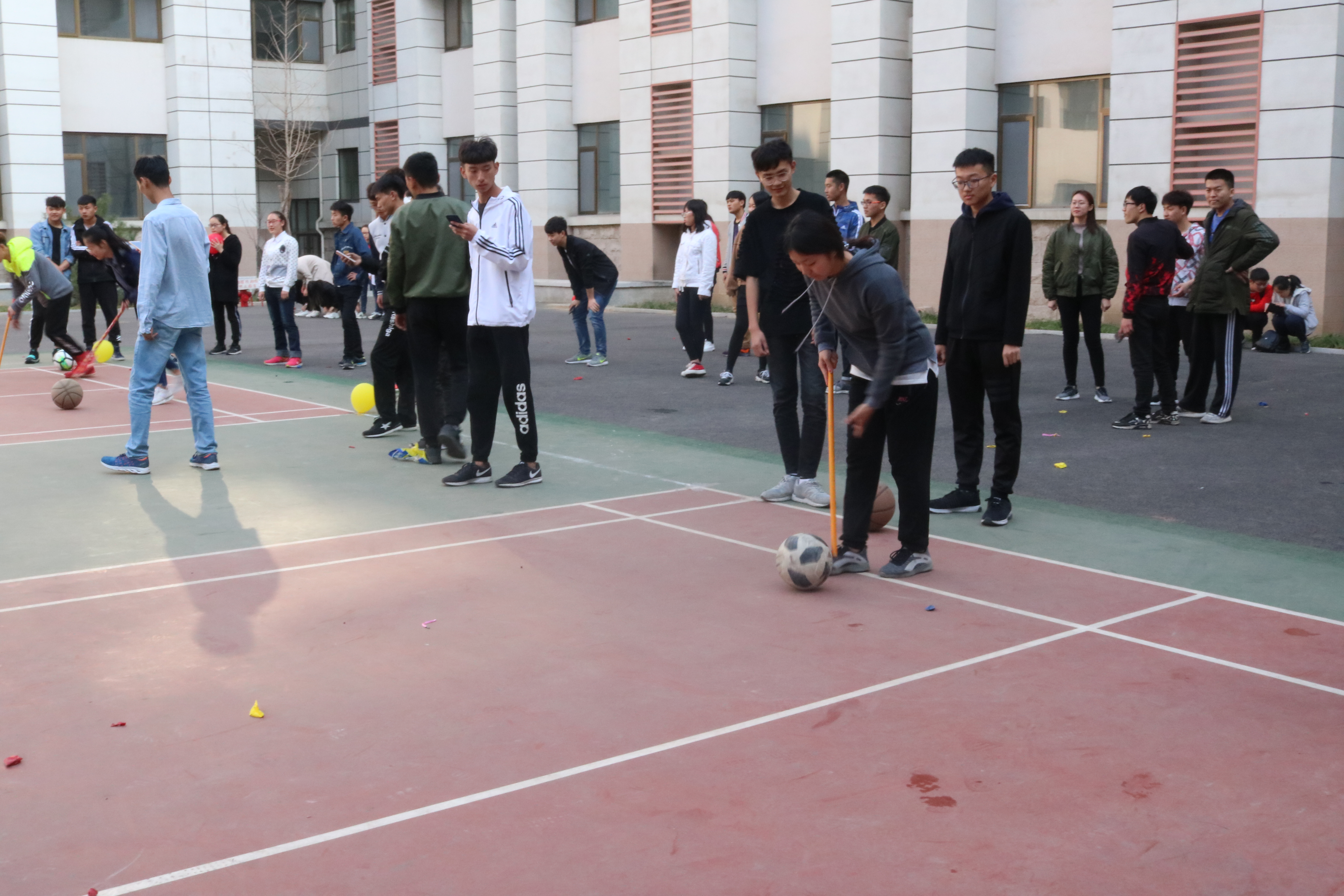 活动“赶球跑”,速度和协调能力的较量,比赛场面非常激烈,农业资源与环境1702班拔得头筹。