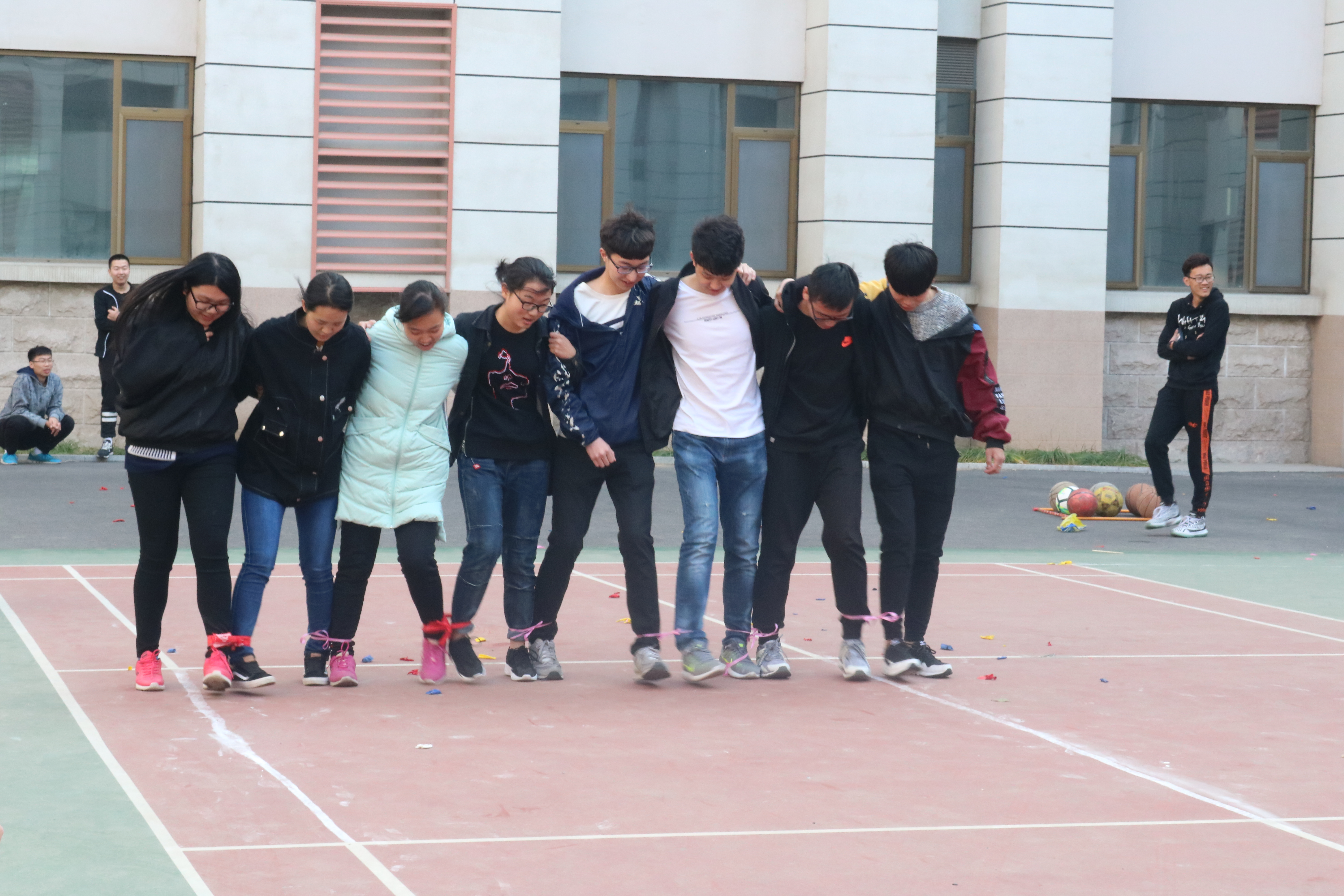 活动“大力绑腿跑”,是最考验配合度、团队精神的一项活动。环境工程1701班获得第一名。