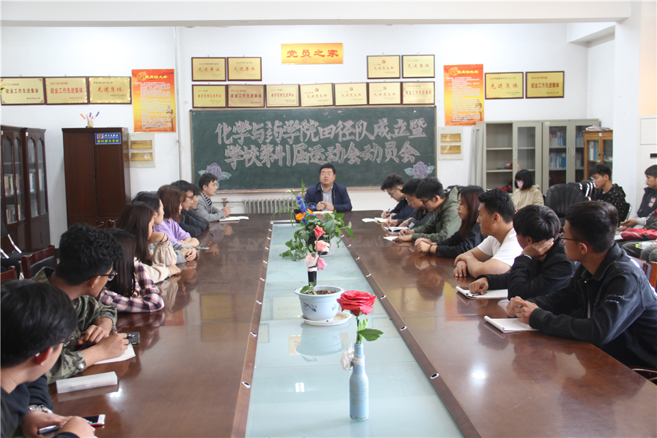 4月20日,青岛农业大学化学与药学院于信息楼四楼会议室举行田径队成立仪式暨第41届校运动会动员会。化药学院党委副书记史雪辉、正科级辅导员杨冬冬、学生会体育部成员及全体运动员参加会议。