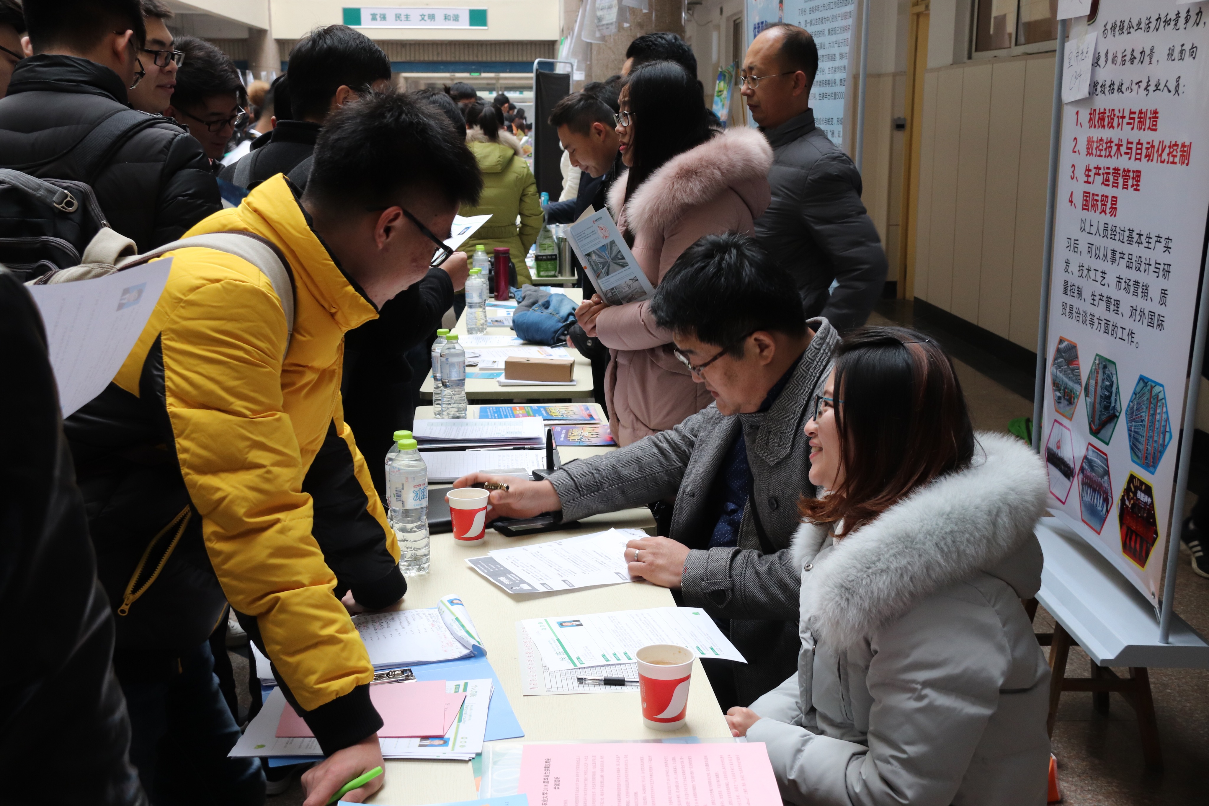 12月2日,山东省2017年秋冬季高校毕业生就业集中招聘活动专场暨青岛农业大学2018届毕业生大型供需见面双选会在青岛农业大学举行,此次双选会共吸引750余家用人单位到会,为毕业生提供就业岗位18000余个,涵盖我院机械设计制造及其自动化、电气工程及其自动化、农业机械化及其自动化、农业电气化、测控技术与仪器全部专业类别。机电工程学院党委书记李在洪、党委副书记副院长姜鲁平、辅导员安金鹏到现场指导工作,我院500余名2018届毕业生参加了双选会。