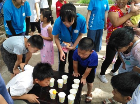为了让队员们与小朋友们的关系更进一步,队员们组织小朋友们展开“破冰之旅”活动,“水上漂”游戏,纸杯倒满水,让乒乓球飘起来,小朋友们用力吹使乒乓球,让其飘在终点的杯子。通过小组赛和个人赛不断淘汰,产生了最后的胜利者。虽然有些小朋友没有获胜,但也意识到个人力量对团队的重要性。