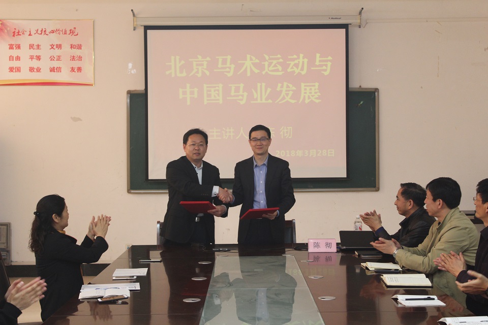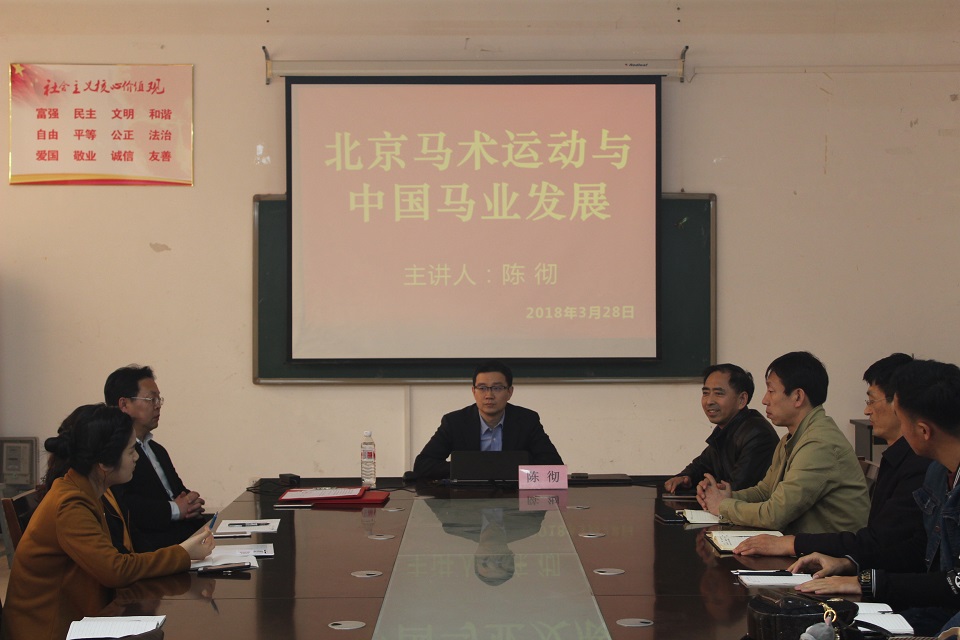 3月28日,动物科技学院学术大讲堂举办马业科学专题讲座。北京马术协会秘书长陈彻应邀来校作题为“北京马术运动与中国马业发展”的报告。