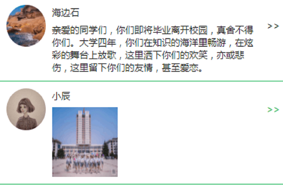 王庆军书记在微信留言中说:“亲爱的同学们,你们即将毕业离开校园,真舍不得你们。大学四年,你们在知识的海洋里畅游,在炫彩的舞台上放歌,这里洒下你们的欢笑,亦或悲伤,这里留下你们的友情,甚至爱恋。经常回母校看看,学校永远是你们温暖的港湾。”
