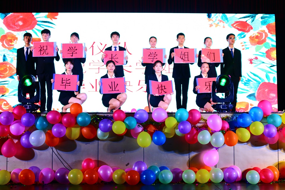 四年的相逢与陪伴,四年的相遇与相知,感谢相识,感谢美好,感谢争吵,感谢曾经的相看两不厌。李清清老师、黄瑞新老师、学生姜岩、赵轩的师生朗诵《我们一起走过的青春》饱含了多少回忆,饱含了多少青春。优雅的钢琴小提琴合奏《梦中的婚礼》和歌曲舞蹈《K歌之王+告白气球》点燃了现场的气氛。在校生精心准备的相声《毕业这点事》用幽默诙谐的方式凸显了大学生活的乐趣,引得全场观众开怀大笑。由车广杰、刘园园、林鑫老师和2016届学生会带来的部长老师秀,给本次晚会增添了亮点,平时他们一起并肩工作,此刻他们又通过舞蹈、唱歌等多样的方式表达了对学院的深深感情。