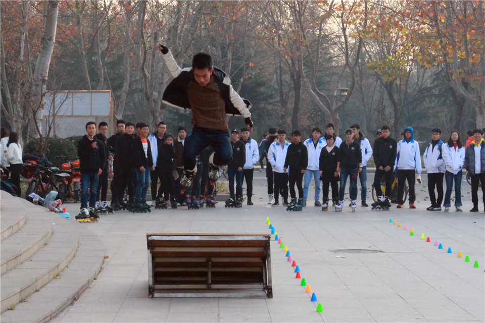 开幕式中,焦点轮滑协会受邀为同学们带来了一场精彩表演,蟹步绕桩、外规绕桩、正脚跨桩、单脚绕桩和惊心动魄斜坡飞跃,赢得了同学们的欢呼。洋溢着青春的面孔,轻盈优美的舞姿,经济(合作社)学院文艺部带来的舞蹈将现场气氛推至高潮。