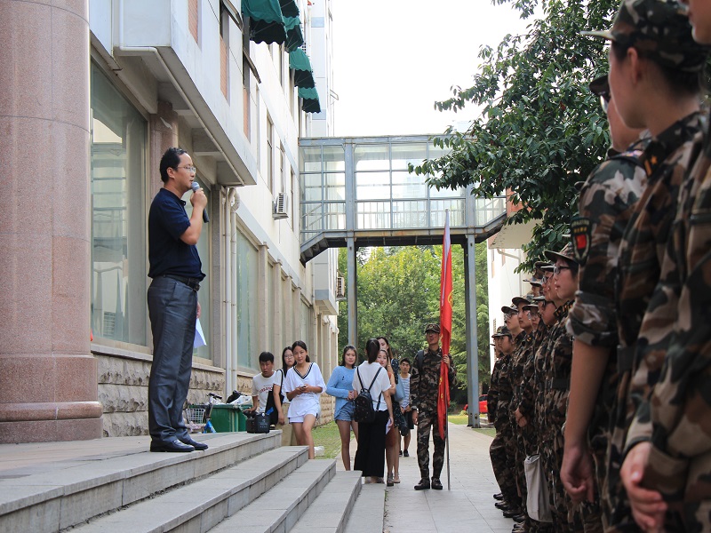 汇演结束后,学院党总支副书记费廷坤为2017级新生作了军训总结讲话。他充分肯定了此次军训中同学们取得的进步和成绩,并对为此付出汗水的学生教官们表示了感谢。他告诉同学们,这次军训汇演只是大学生活的开始,希望同学们能够带着坚忍不拔的“军魂”走完大学这四年。大学第一课圆满落幕,身着军装的同学们纷纷与班主任老师、学生教官们合影留念,记录下这美好而特别的时刻。
