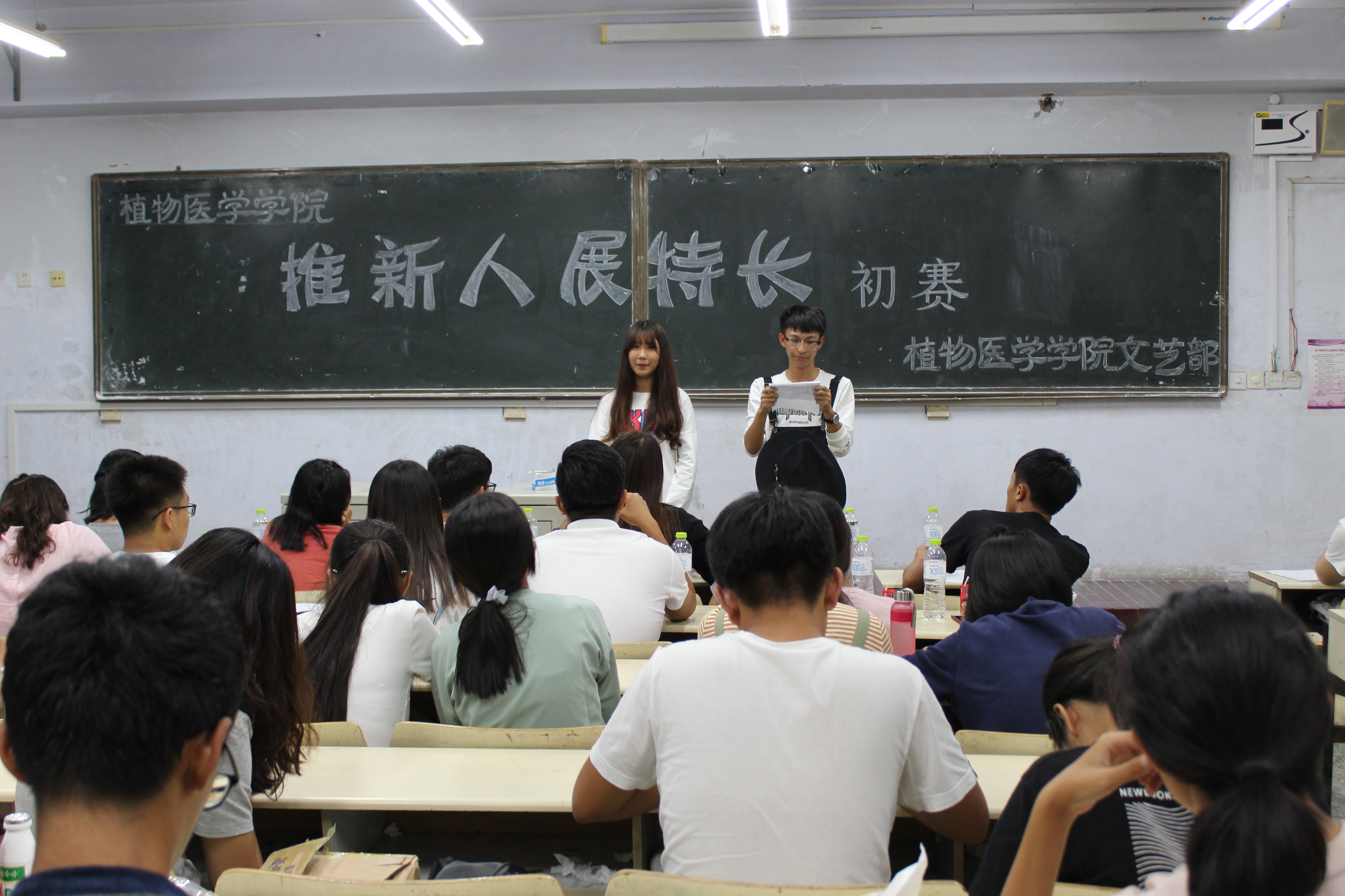 为积极响应学校号召,加快学院高素质文艺队伍建设,给广大热爱艺术的大一同学提供一个展示自我的平台,9月25日,植物医学学院“推新人,展特长”比赛初赛在教学区A区举行。本次“推新人 展特长”比赛由文艺部程晓雨主持,学生会成员担任评委,大一新生积极参与其中。