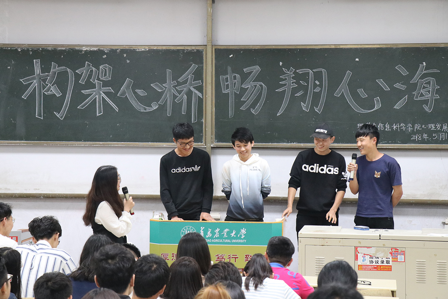 为广泛普及心理健康知识,为大学生营造良好的成长氛围,5月19日,理学与信息科学学院心理发展部在教学区B区举办了以"构架心桥、畅翔心海"为主题的趣味心理知识竞赛,2017级全体学生参加。