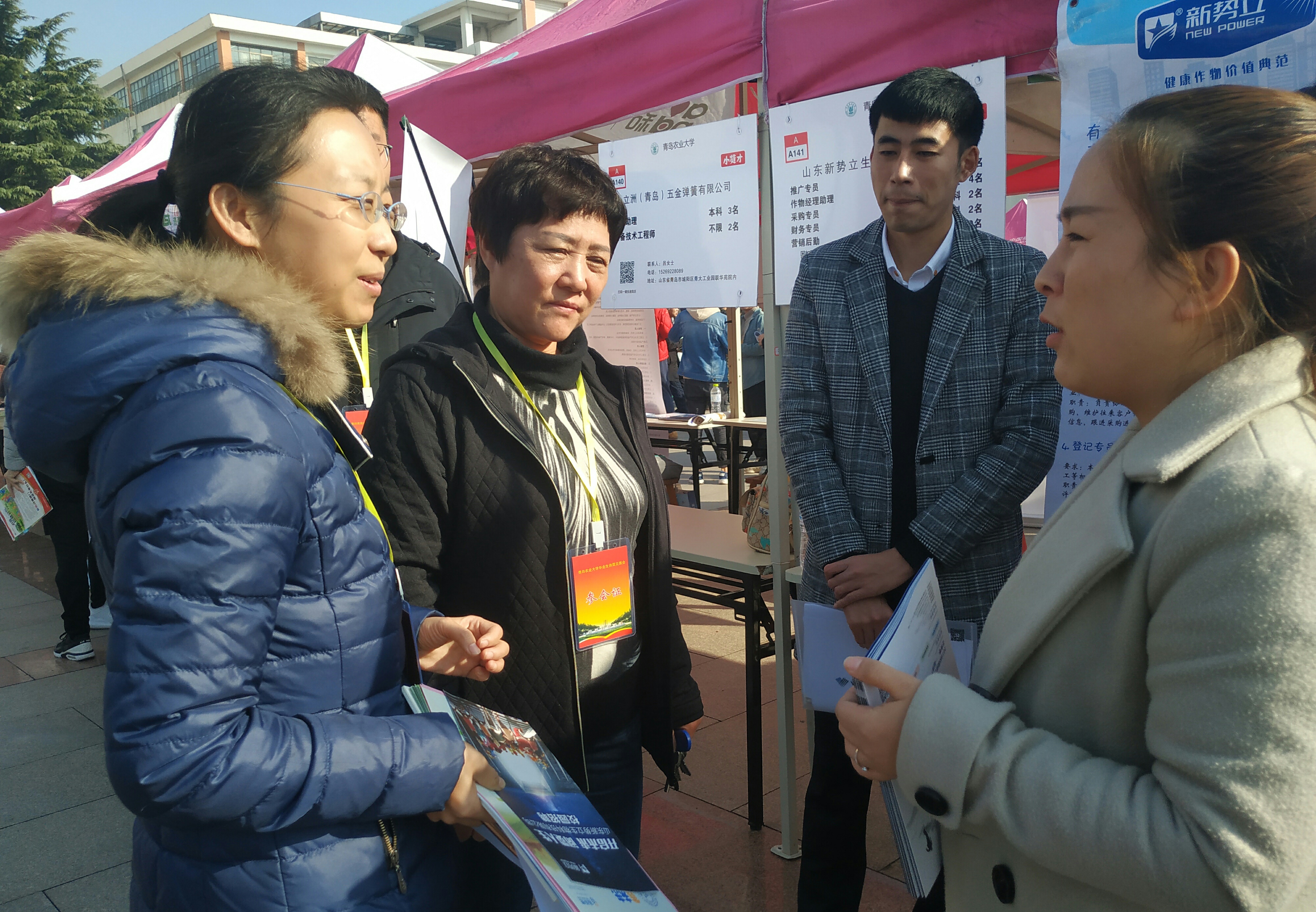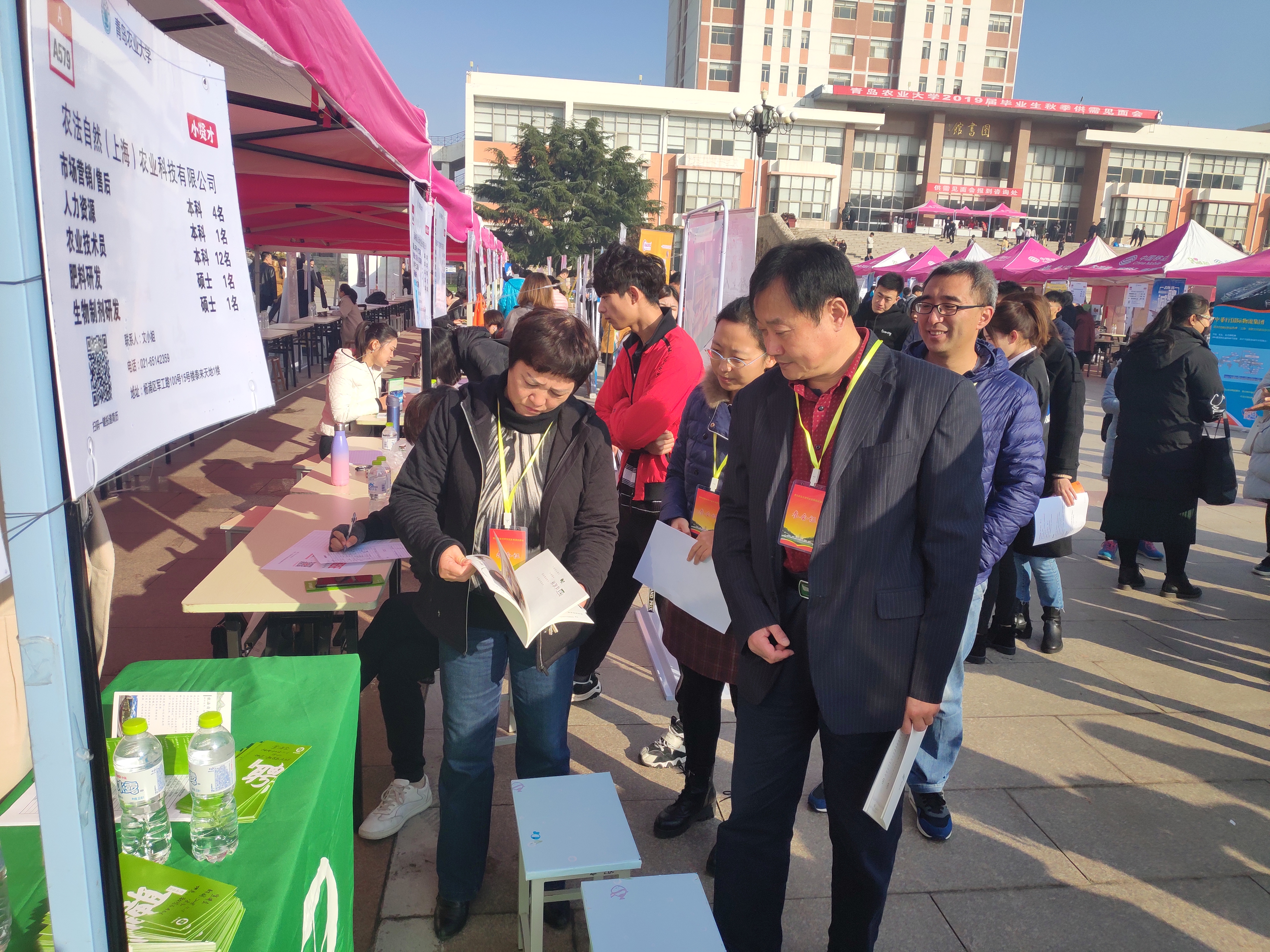 11月10日,由青岛农业大学举办的2019届毕业生秋季供需见面会在学校虹子广场举行。园艺学院院长王然,党委书记刘培利,党委副书记王春晓,辅导员宋颖芳、马文哲到现场进行走访。