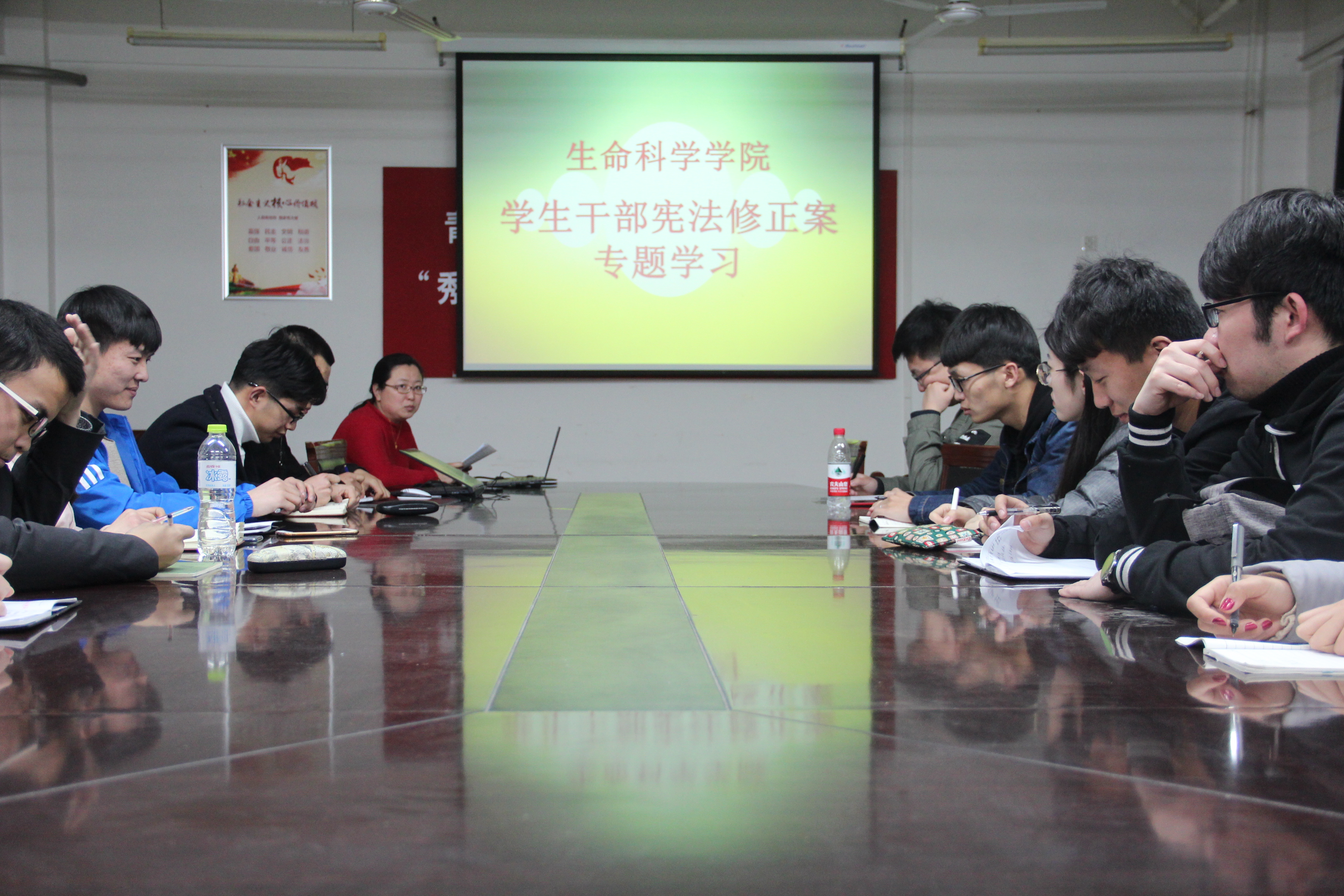 3月22日,生命科学学院组织全体学生干部专题学习宪法修正案,由分团委书记王敬进行领学。