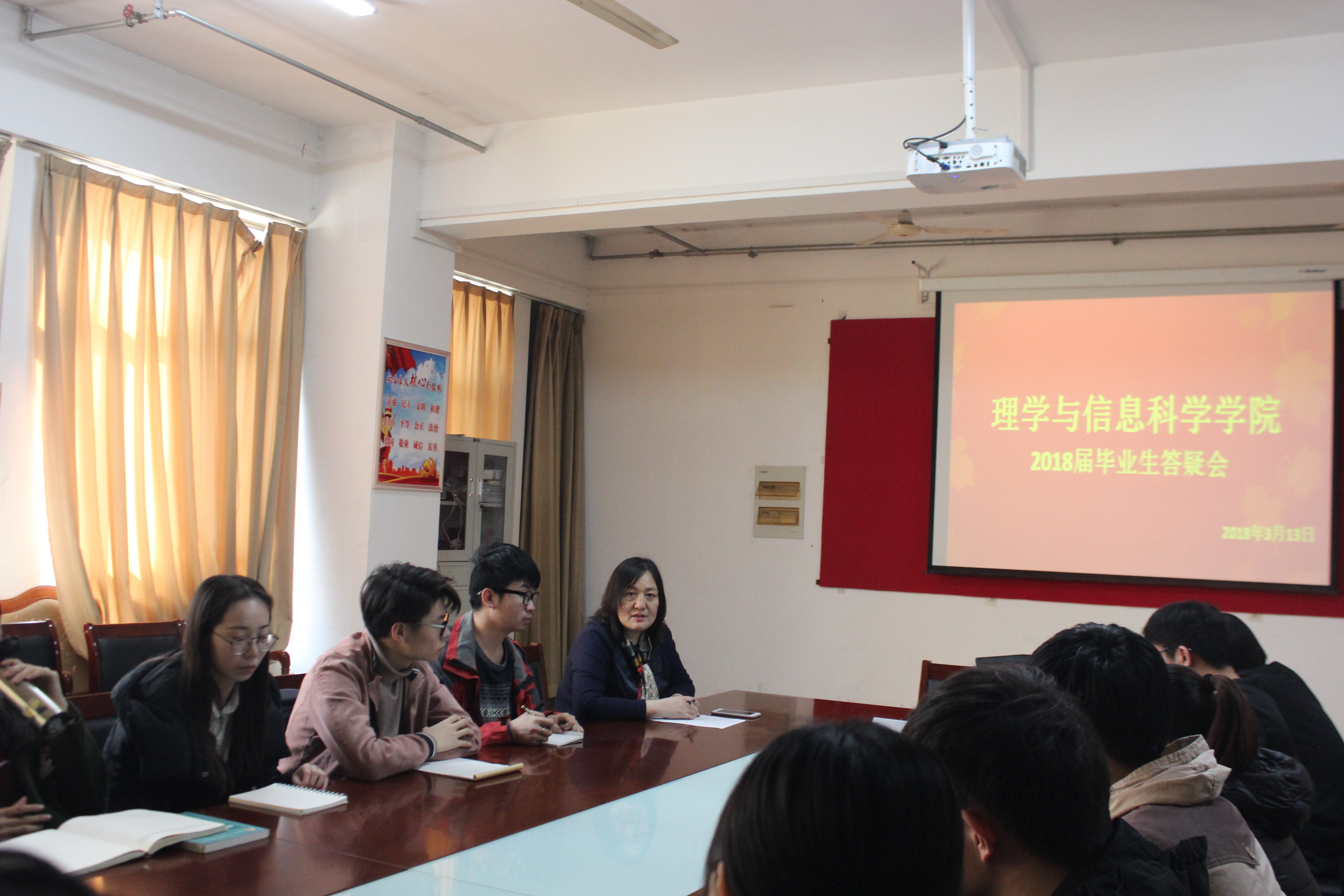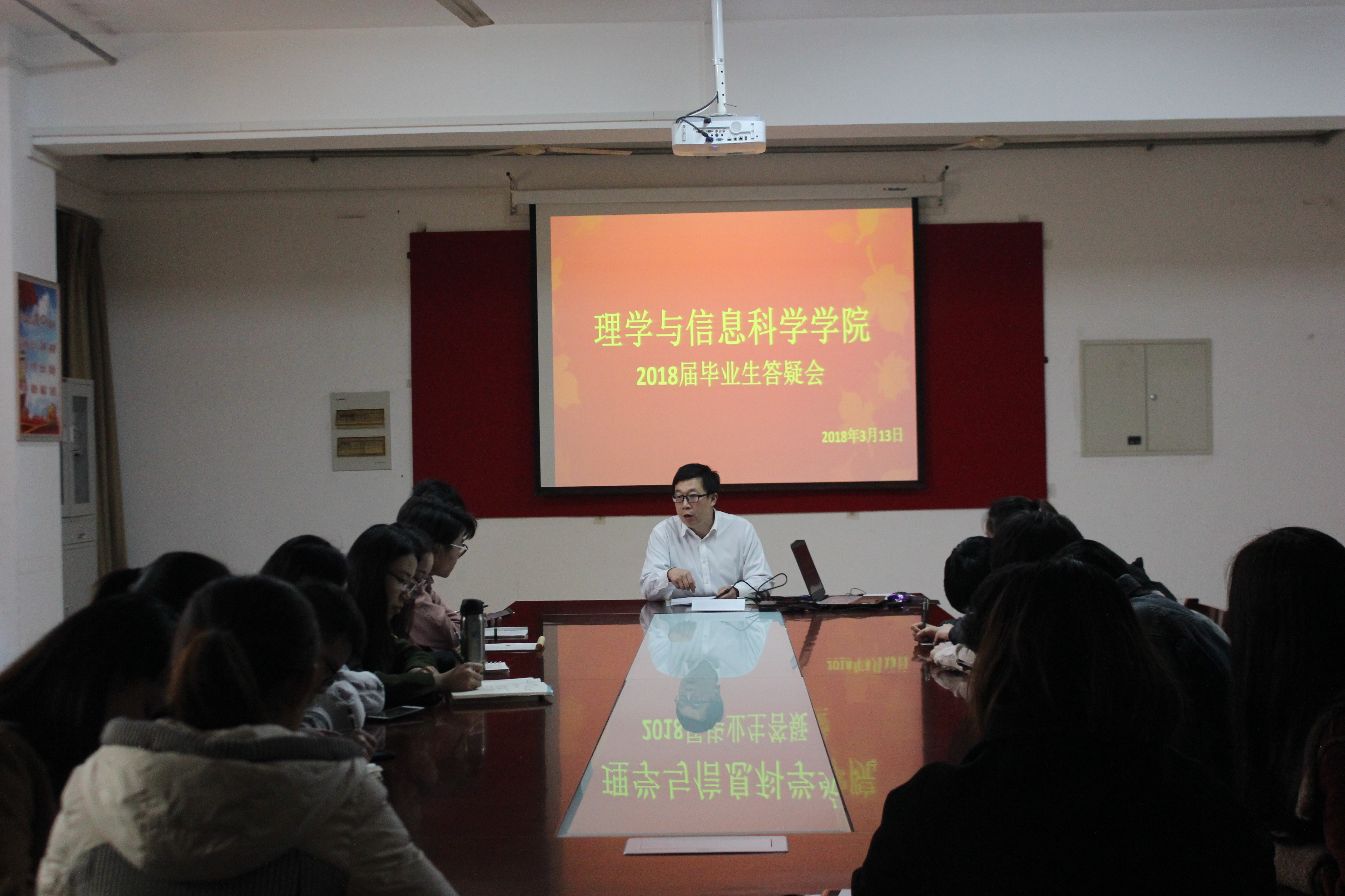 3月13日,青岛农业大学理学与信息科学学院在信息楼215举行2018届毕业生答疑会,理信学院团委书记孙杰、正科级教学秘书张艳出席此次会议。