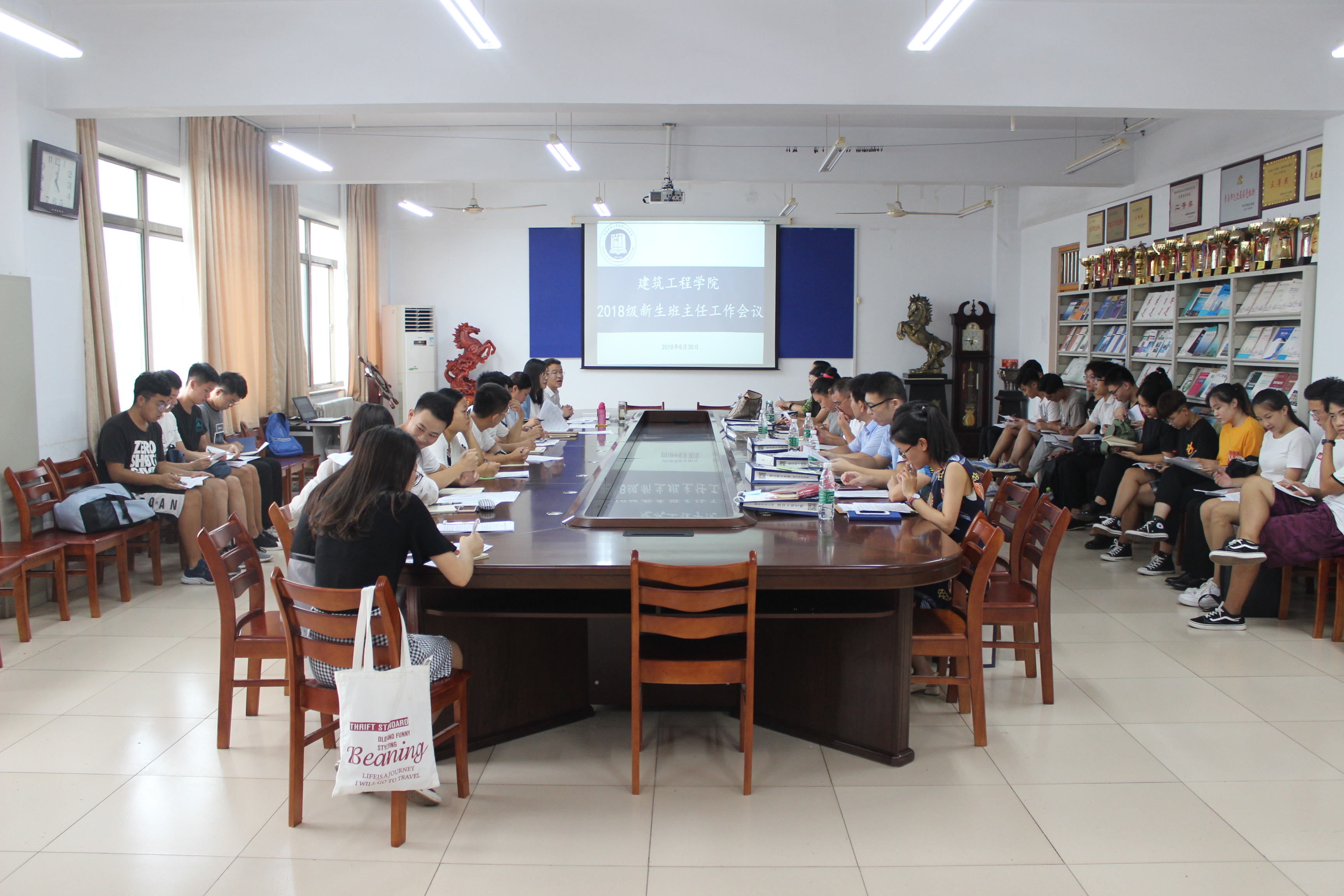 8月30日,建筑工程学院在工程楼会议室召开了2018级新生班主任工作会议,对建工学院2018级新生迎新工作进行了安排部署。学院党委副书记、副院长、学工办主任车广杰,团委书记刘园园、辅导员林鑫出席本次会议,2018级全体新生班主任和班主任助理参加。