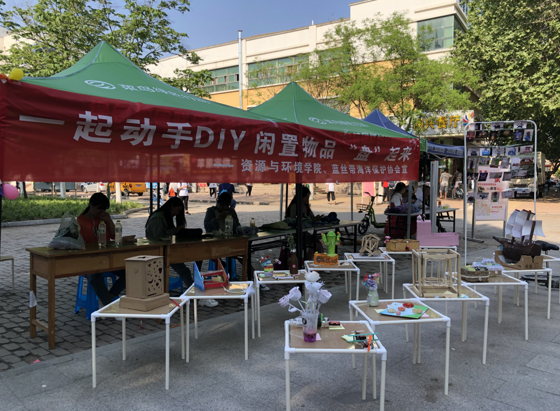 为倡导环保的生活方式,提高学生的环保意识,青岛农业大学资源与环境学院分社联携手蓝丝带海洋保护协会共同举办了“变废为宝―”环保DIY大赛活动,并于5月11日至5月14日在东苑三号楼前设立展区,向全校师生现场展示本次大赛的优秀作品。