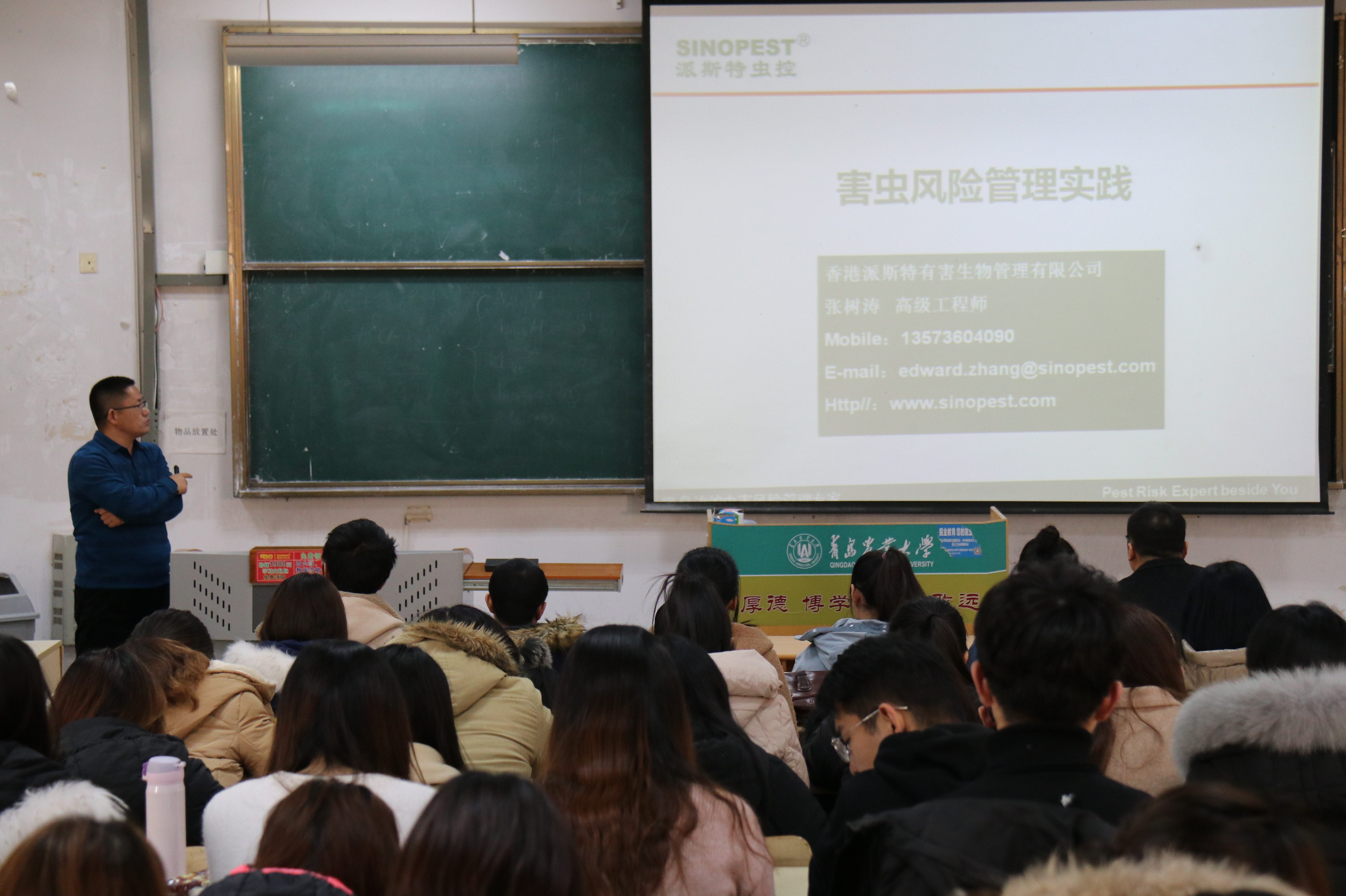 傅鹏结合自己工作经历,为同学们分析了当前就业形势、企业需求,同时对全体同学提出五点建议:一要做好学习笔记,学会总结归纳;二要学会帮助和拒绝别人;三要学会人际沟通技巧;四要学会团结协作;五要沉心静气,做好自己的事情。张书涛在讲解中结合近几年的食品安全事件与自己所从事的工作,为同学们介绍了虫害风险管理流程、虫害风险识别及虫害识别解除等专业知识,要求全体学生在创业过程中做好吃苦和失败两手准备、要坚持不懈地做好每一件事情,希望全体学生积极响应国家创新创业政策,满怀信心,勇于奋斗,在创新创业的大潮中闯出一片属于自己的天地。