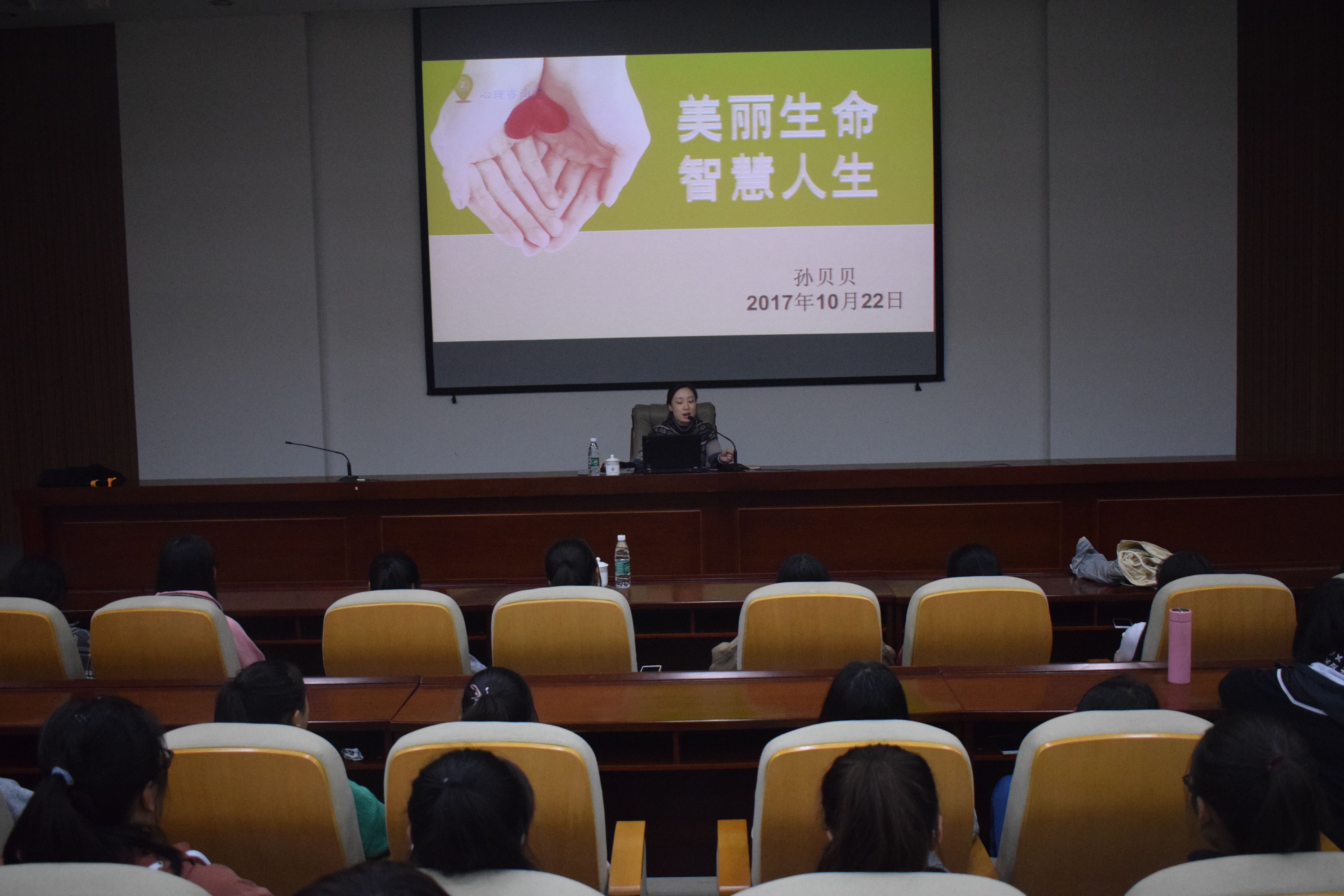 根据学工部统一部署,学院邀请校心理咨询师孙贝贝老师为全体新生作心理辅导主题宣讲,正科级辅导员曹斯亢主持宣讲活动。贝贝围绕“生命之源”、“生存之意”、“生活之慧”三部分展开宣讲。她以短片<<从受孕到诞生全过程>>为切入点,循循善诱,激发学生对生命的思考;通过对马斯洛需求层次理论的讲解和一系列哲学小故事佐证,让学生更加深刻认识到生命宝贵;通过与新生们之间的小游戏互动,引导他们认识独立、自律的重要性;她结合自身求学及工作经历,鼓励新生树立远大理想,对自己未来四年的大学生活进行科学合理的规划。孙贝贝叮嘱学生要学会爱自己,接纳自己的快乐与痛苦、承担起自己的责任、理解尊重他人,进而实现自己的理想。最后,孙贝贝以短片<<人生不是一场马拉松>>作为结尾,激励新生们敢于突破生活中的瓶颈,打破困境,引发全体学生共鸣。