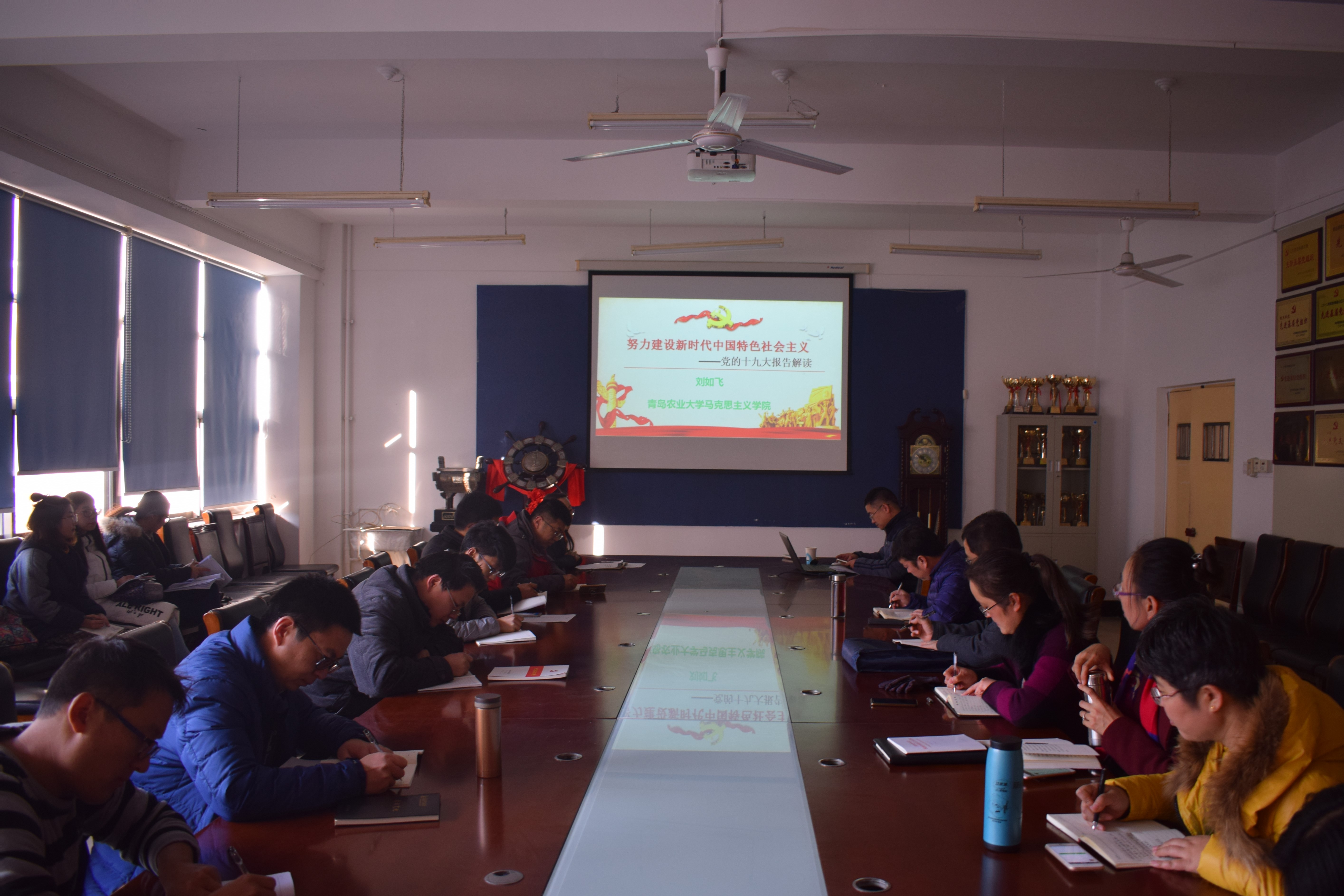 12月1日,农学院党总支在生物楼举办以“努力建设新时代中国特色社会主义”为主题的十九大精神理论辅导报告会。中共青岛市委宣传部专家讲师团成员、青岛农业大学党的十九大精神宣讲团成员、青岛农业大学马克思主义学院刘如飞副教授应邀作主题辅导报告,会议由农学院党总支书记张玉梅主持,农学院全体党员及部分积极分子参加。
