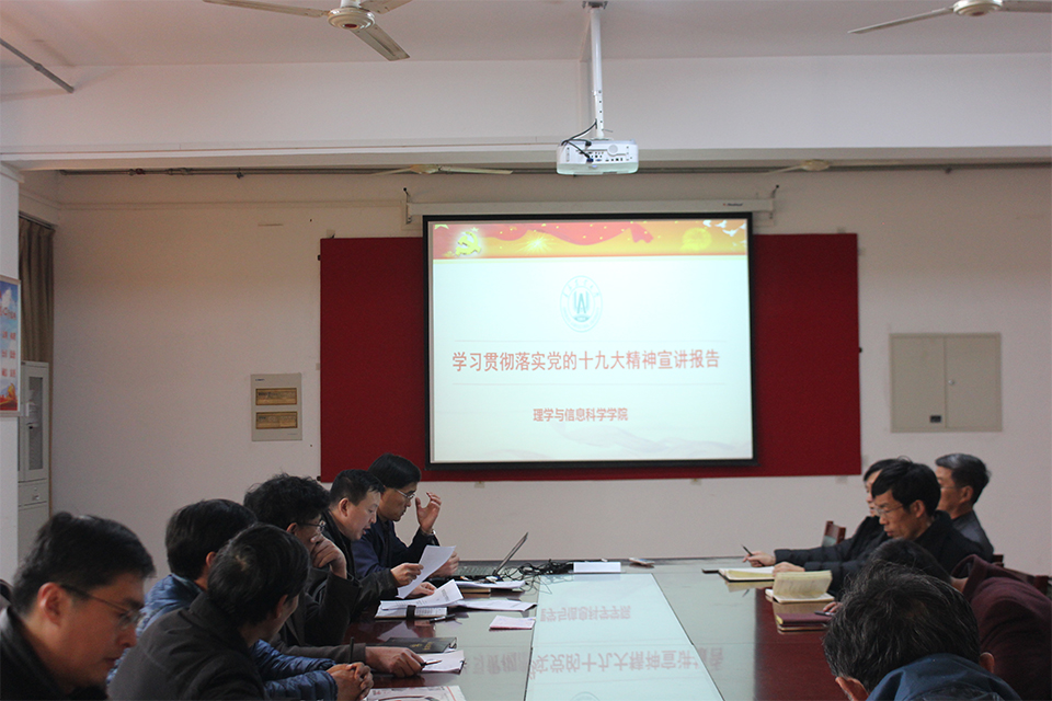 根据《中共青岛农业大学委员会关于认真学习宣传贯彻党的十九大精神的通知》精神,11月23日,理学与信息科学学院在信息楼215开展学习十九大精神“第一讲”。学院党委书记杨凯作了题为《学习贯彻落实党的十九大精神宣讲报告》的报告。
