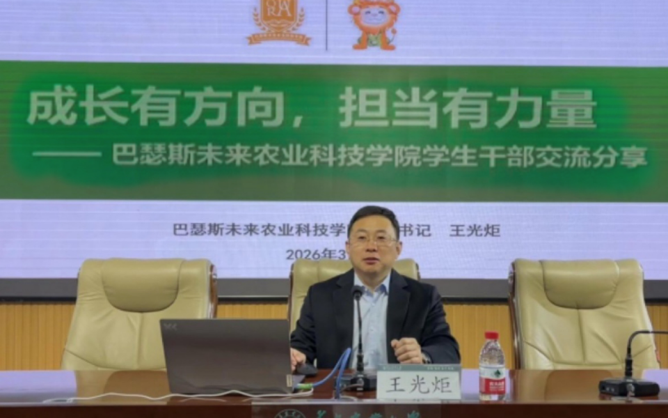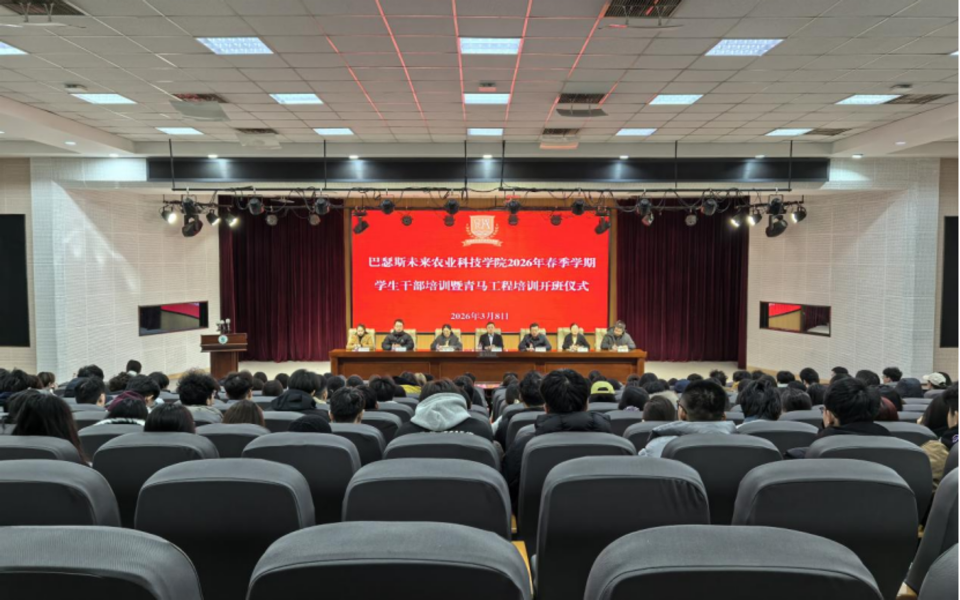 3月8日,青岛农业大学巴瑟斯未来农业科技学院在学术会馆第二报告厅召开2026年春季学期学生干部培训暨青马工程培训开班仪式。会议由学院党委副书记、副院长许大伟主持,学院党委书记王光炬、学院团委书记刘璐、RAU中国中心驻学校专员李迎为全体学生干部开展专题培训,学院全体辅导员、全体学生干部参加会议,学生干部代表张晓芮、段幸均、来钰颖、黄睿琪、肖潇、厉依琳、王姿懿在会上作经验分享。