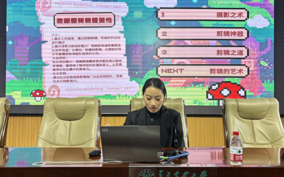 在学生干部经验分享环节,各位学生代表结合自身优势,分模块作经验分享。张晓芮结合自身实践,介绍了PPT制作的技巧与方法;段幸均围绕新媒体运营,分享了内容创作与平台管理经验;来钰颖从项目选题、团队组建和材料准备等方面,交流了大创竞赛的备赛心得;黄睿琪结合新闻写作实践,讲解了校园新闻采写的要点与注意事项;肖潇分享了留学申请的流程与准备经验;厉依琳、王姿懿结合自身保研经历,从学业规划、材料准备及面试技巧等方面进行了详细介绍。各位代表的分享干货满满,为全体学生干部提供了可借鉴、可落地的实践经验。