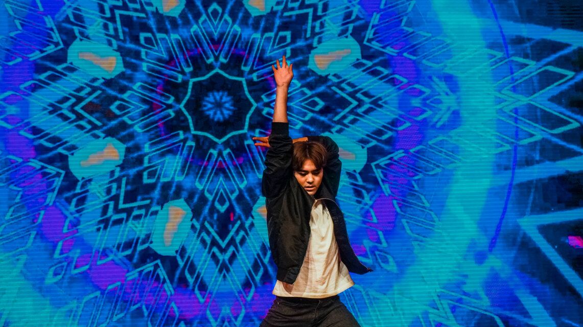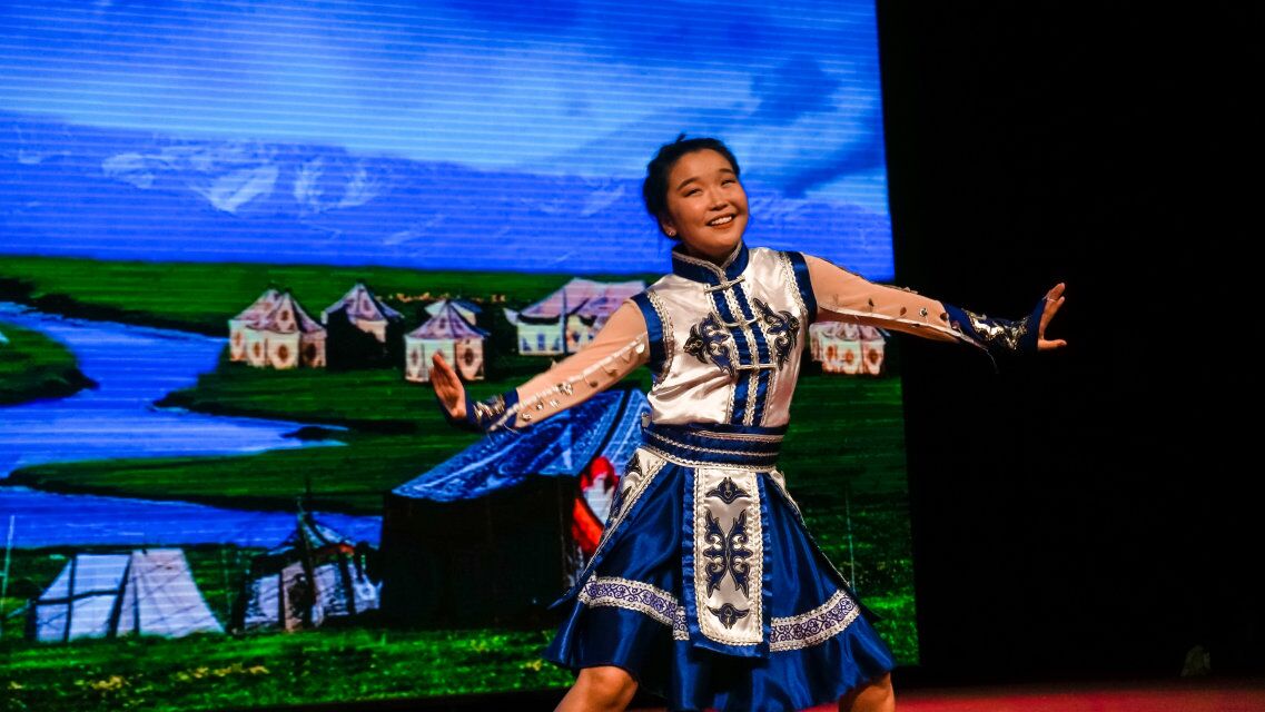 中外学生同台比“舞”。伴着聚光灯的推进,舞台的焦点来到了蒙古女孩图雅的身上,穿着特色的民族服饰,随着舞曲翩翩起舞,让所有人仿佛置身蒙古草原之中。曲风一转,中国学生刘荣军登场,在聚光灯下表演起自己的拿手绝活,当现代舞遇上蒙古舞,擦出了文化碰撞与交融的火花。