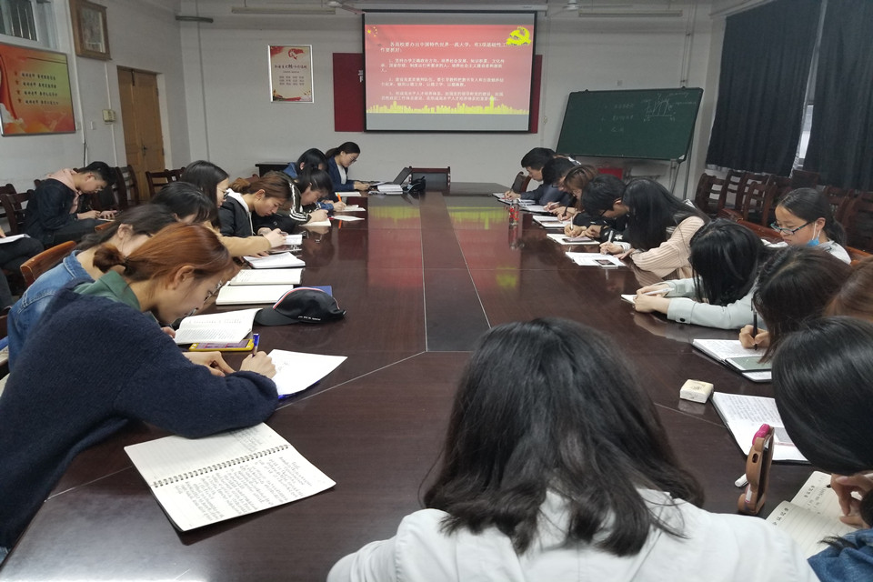 本期主讲学生党员刘艳菲带领全体学生党员原文学习了习近平总书记在北京大学师生座谈会上的讲话。主要从明确高校的办 学目标、对高校办学提出的三项要求和对青年提出的四点期望三个方面充分解读了习近平总书记的讲话。最后,与会党员就学习内容深刻探讨了习近平总书记对广大青年提出的四点希望等问题并交流分享心得。学生党员一致表示,要在奋斗中释放青春激情、追逐青春理想,不辱时代使命,不负人民期望,为民族复兴铺路架桥,为祖国建设添砖加瓦,成为社会主义建设者和接班人。