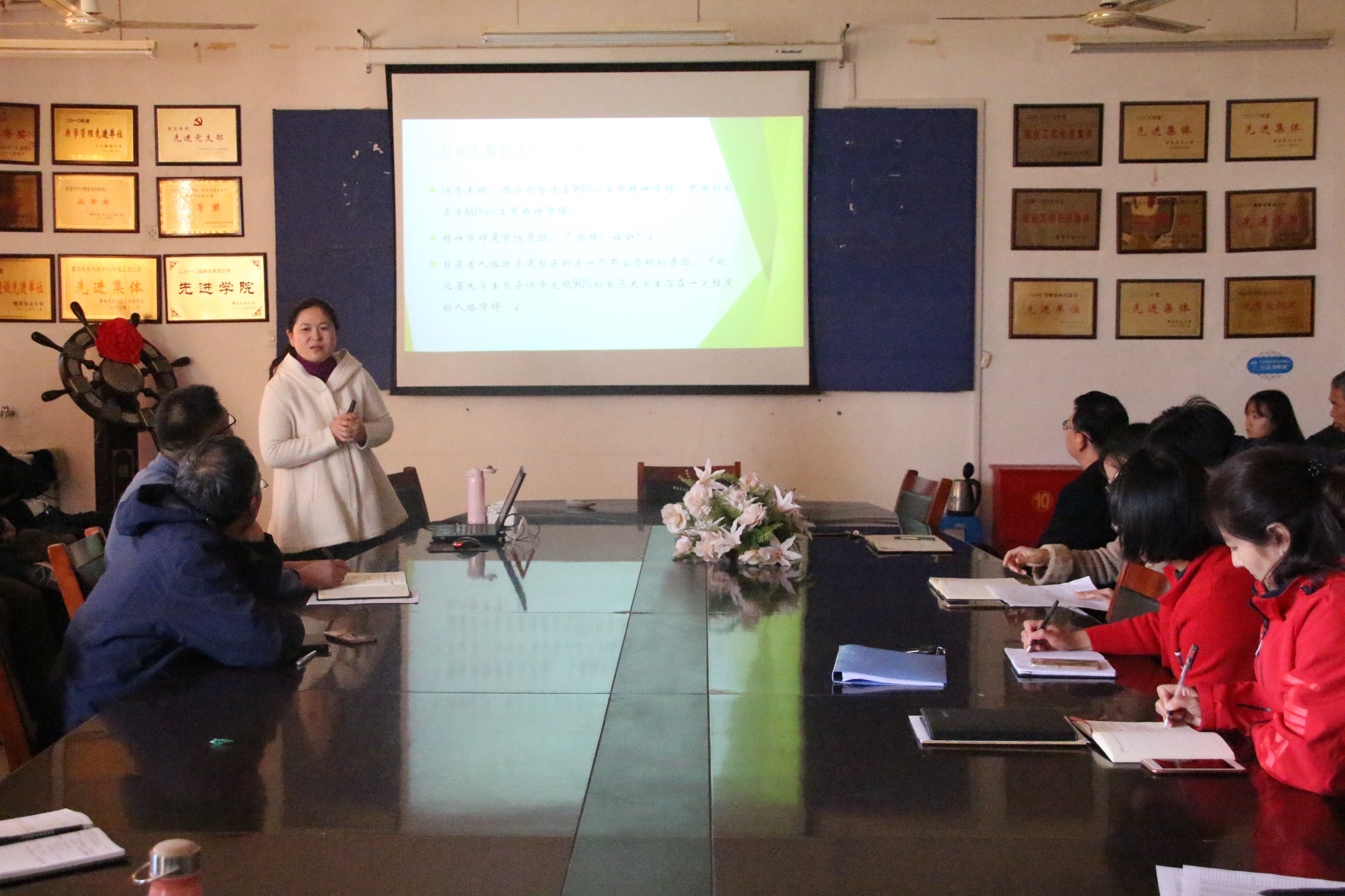 11月22日,青岛农业大学资源与环境学院邀请学生工作部心理发展指导中心主任张利萍在化学楼开展了心理危机识别、预防和干预培训,学院全体班主任和部分学生干部参加此次培训,培训由学院团委书记肖洲主持。