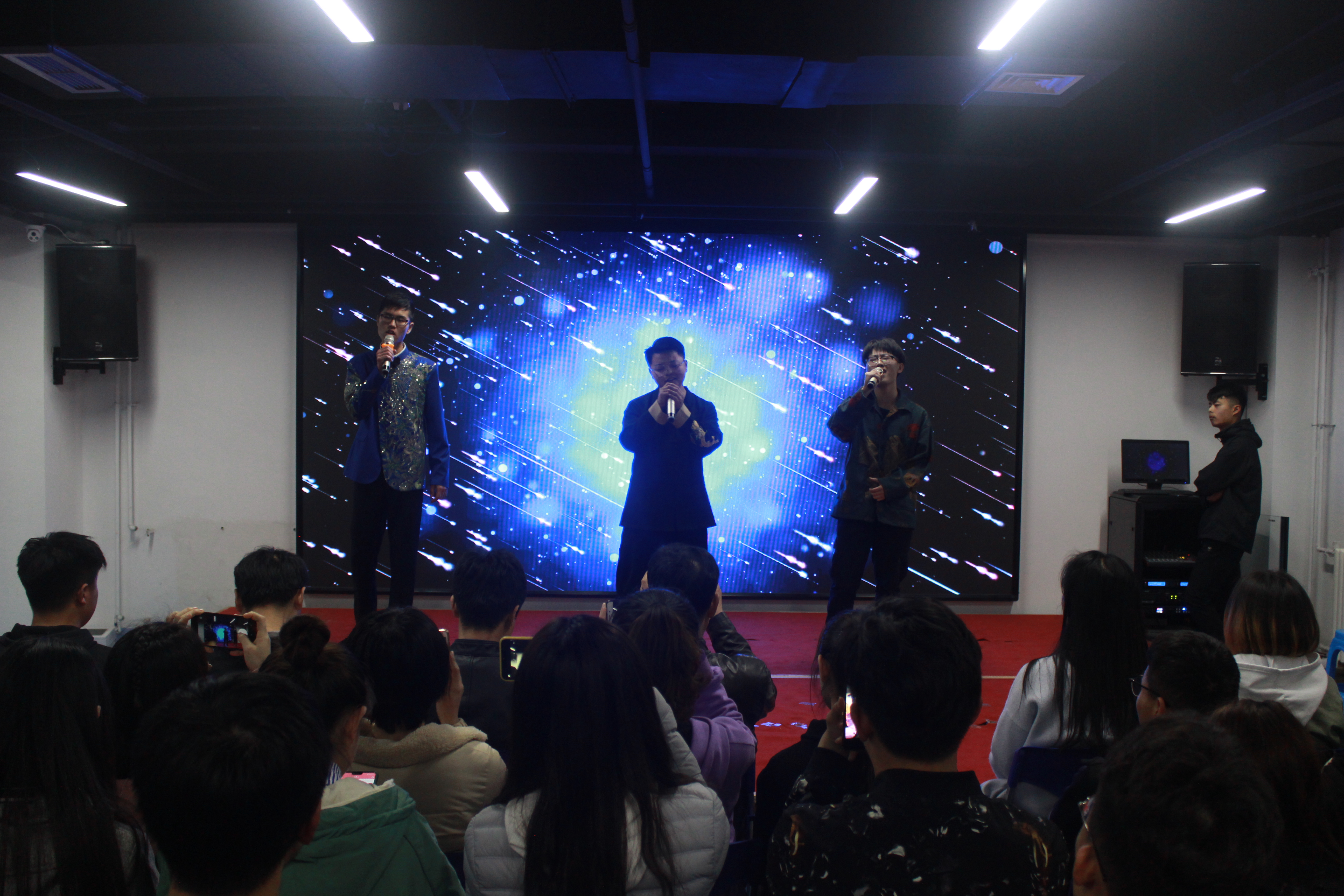 曲艺队紧随其后,带来相声《新时代,新青年》,用一段有说有笑的相声漫谈入学半年后的生活,捧、逗哏的默契配合将整个晚会推向高潮。