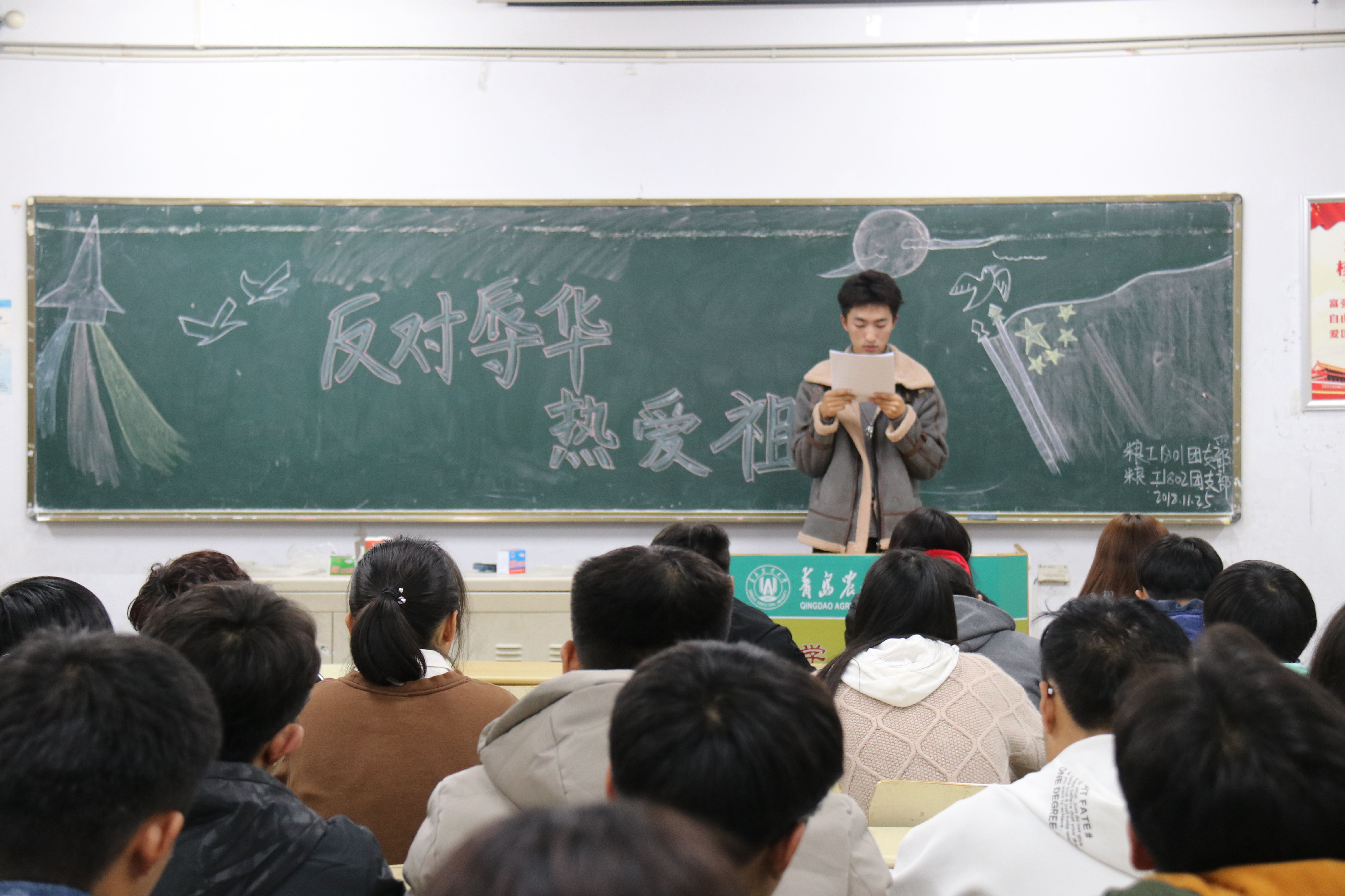 11月25日,青岛农业大学食品科学与工程学院在教学区开展“爱国教育”主题政治学习。学院2018、2017级全体学生参与了此次学习。