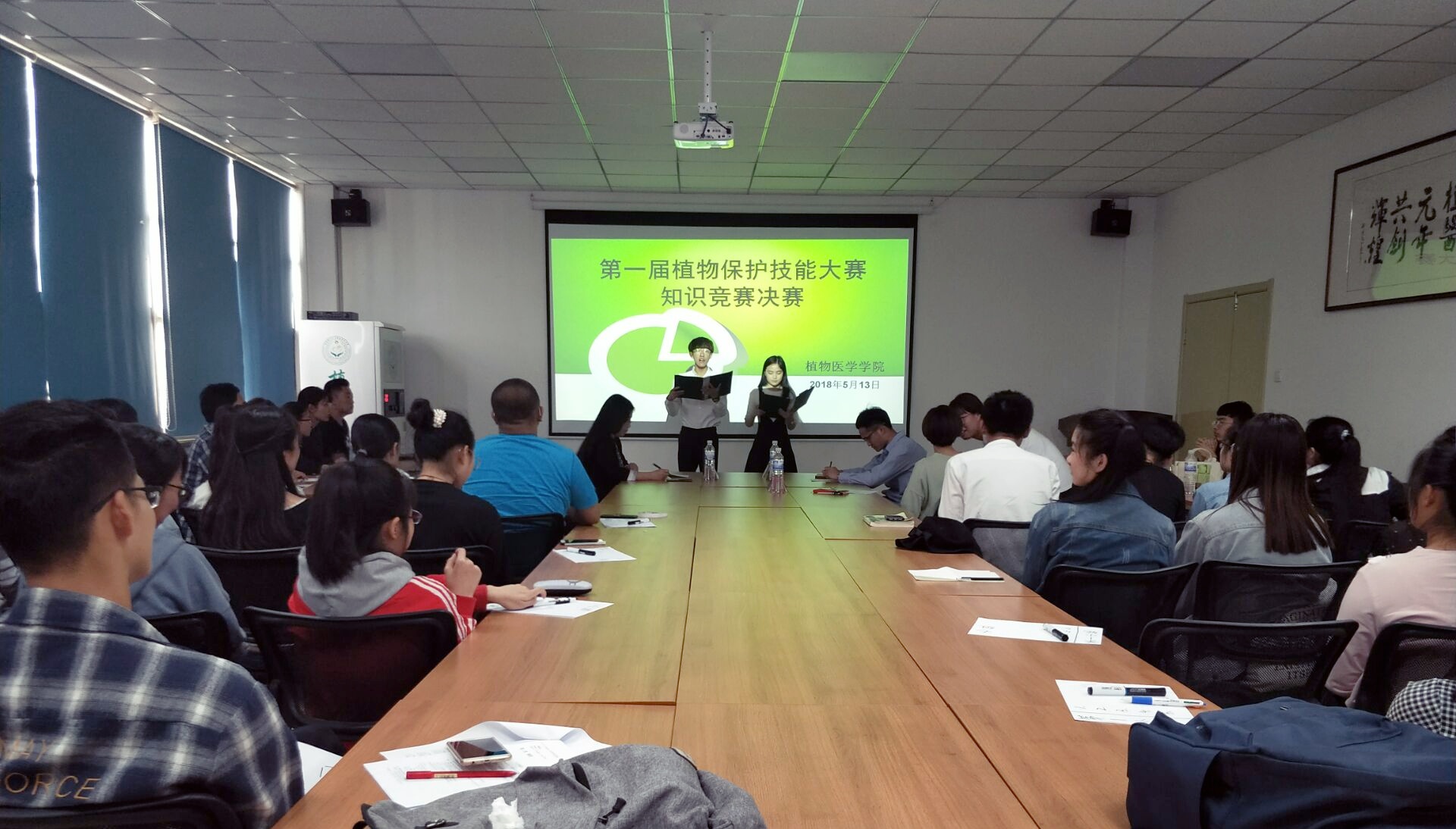 为进一步激发学生对植物保护专业知识的学习和研究兴趣,提高综合素质,5月13日,由青岛农业大学教务处主办、植物医学学院承办的第一届植物保护技能大赛知识竞赛环节决赛在生物楼会议室举行,院团委书记马伟萍、病理学专业老师王彩霞老师和昆虫学专业老师张晓老师出席本次比赛并担任评委。