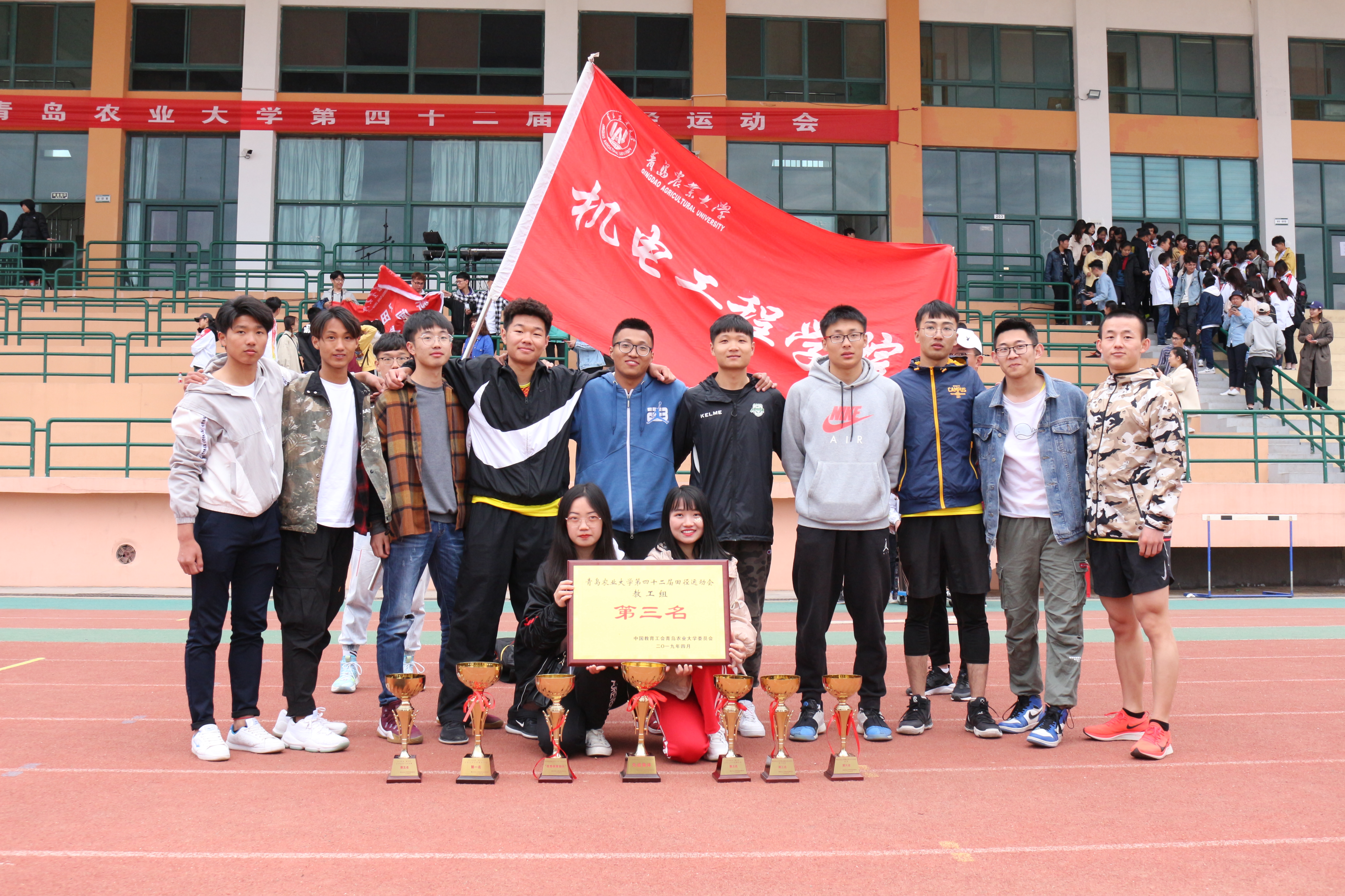 在繁花似锦,杨柳青青,充满无限可能的春天里,4月26日,青岛农业大学第42届田径运动会在五环体育场举行。机电工程学院在本届运动会中获得学生组男子团体第三名,男女团体第六名,教工团体第三名的优秀成绩。被评为2018年度青岛农业大学“阳光体育”先进集体、获2018年度“青农杯”大学生乒乓球赛男子组第一名、2018年度“青农杯”大学生排球赛第五名、姚欢被评为优秀体育部长。