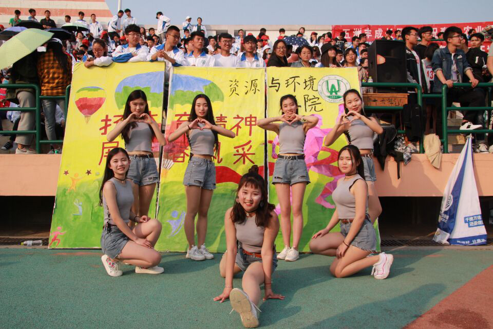 开幕式上,资环学院的院旗迎风飘扬,整齐划一的方队迈着矫健的步伐,昂首挺胸的走向主席台,展现出资环学子拼搏向上的精神面貌。梅花桩的彩旗挥舞,烈烈雄风展现资环精神!运动场上的表演方阵以及啦啦操以其特有的活力与魅力展示了资环学子的朝气蓬勃,也淋漓尽致的诠释了资环学子们的风采。