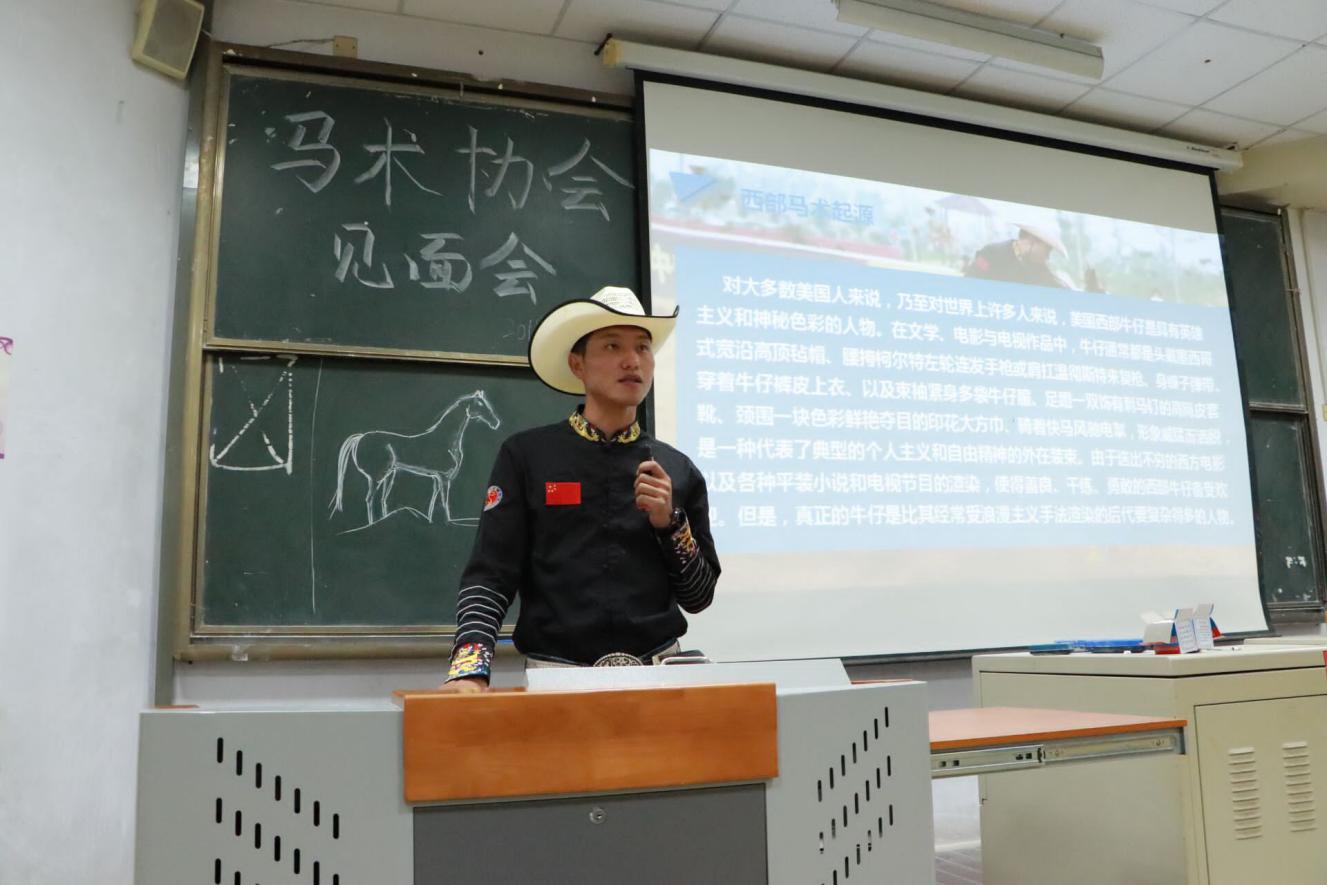 10月20日,青岛农业大学2018级马术协会新生见面会于教学区举行。会上邀请山东马业协会会长潘庆杰、青岛宝湖马术小镇马房经理佟国祥、著名骑手李炎以及马科专业优秀毕业生赵珊珊和张永超等人,帮助新生们了解马和马业。
