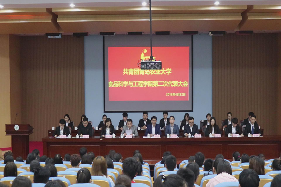 4月22日,青岛农业大学食品科学与工程学院在学术会馆隆重举行共青团青岛农业大学食品科学与工程学院第二次代表大会。青岛农业大学团委副书记王光炬,食品学院党委书记何忠诚,党委副书记宋伟,团委书记李永青,辅导员赵莹、孙晓东出席会议。大会由赵莹主持会议。来自全院基层团组织的270名代表参加了会议,