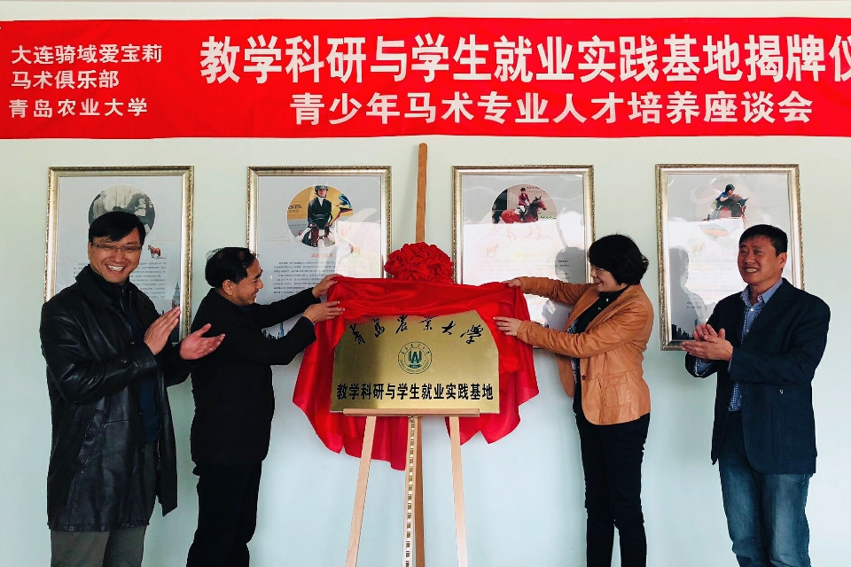 11月4日,青岛农业大学动物科技学院与大连骑域爱宝莉马术俱乐部共建教学科研与学生就业实践基地签约揭牌仪式,在骑域爱宝莉骑士院举行。大连市体育局青少处处长张世庆、大连骑域爱宝莉马术俱乐部有限公司总经理李小阳、动物科技学院党总支书记潘庆杰、团委书记范楚琦、马业科学专业实验室负责人赵珊珊参加签约座谈会。