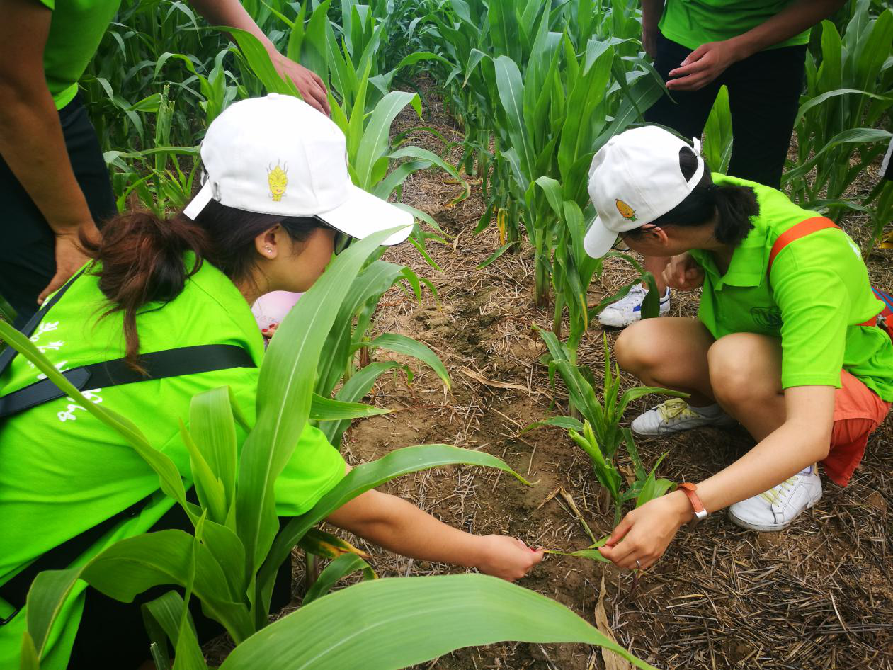 农学院教师孙筱璐带领队员们考察当地玉米生长情况。(中国青年网通讯员 魏庆洋摄)