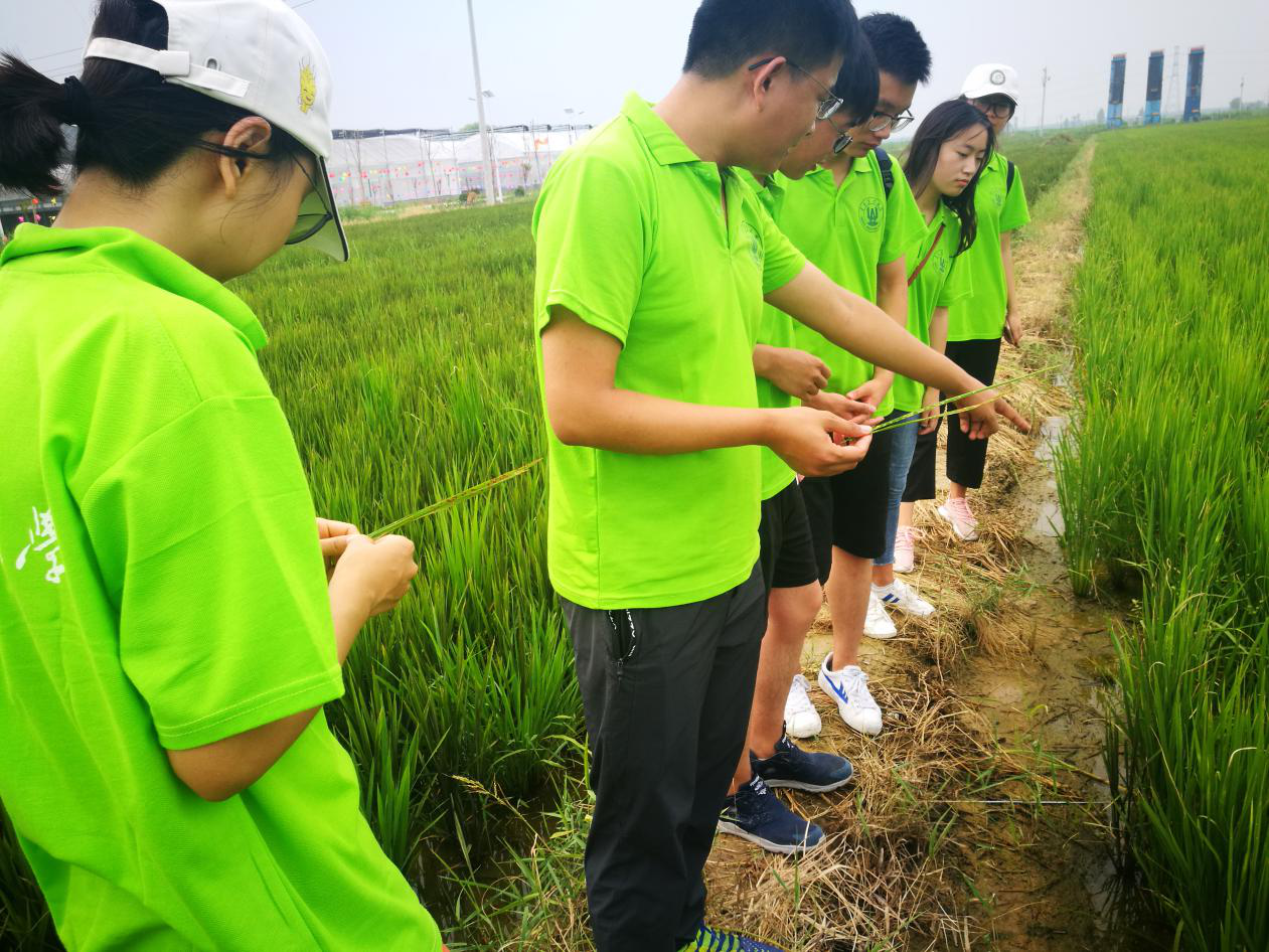 队员们深入水稻田,细致观察水稻锈病,了解其发病原因。(中国青年网通讯员 魏庆洋摄)