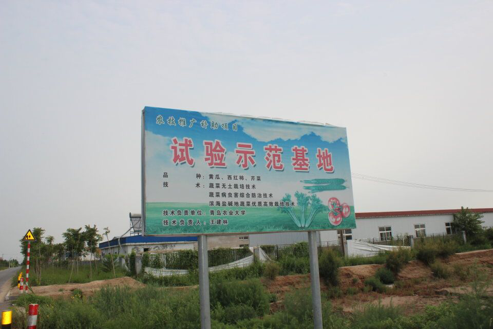 青岛农业大学农学院王健林教授试验示范基地标牌。(中国青年网通讯员 魏庆洋摄)