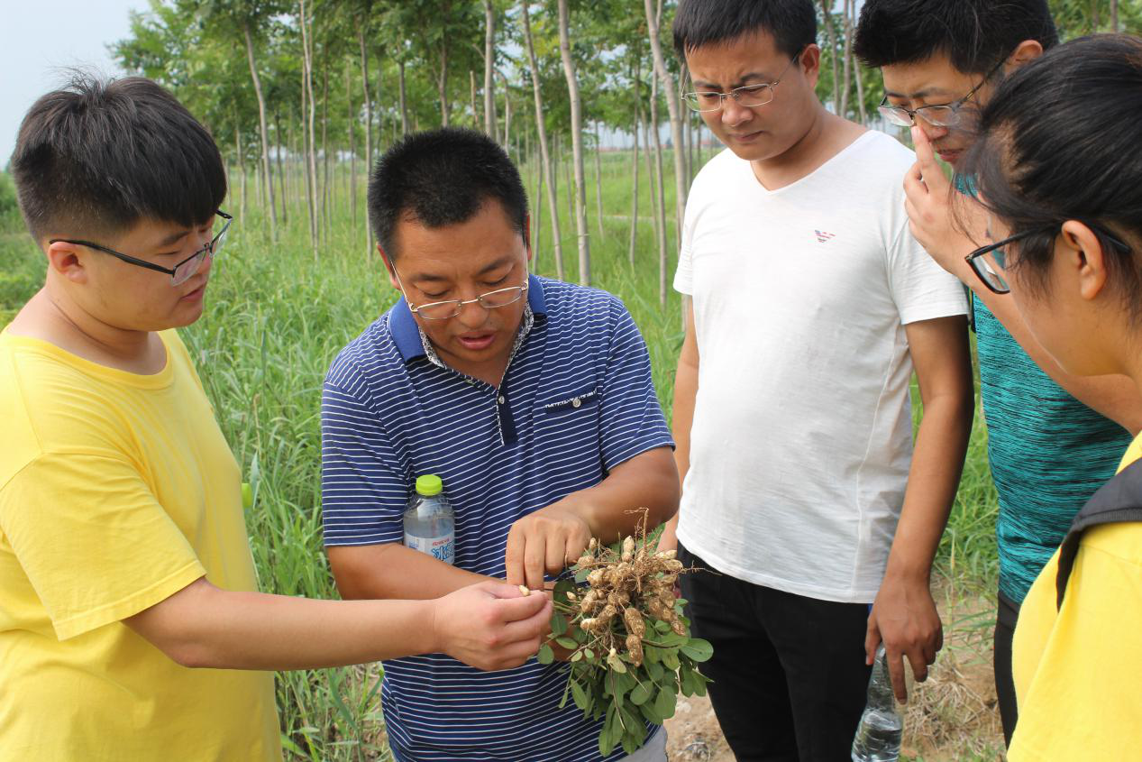 队员们了解到,地处黄河边,这儿的土地大多盐碱化。在花生品种的选择上,王健林教授通过实验室内筛选与田间筛选相结合的方式,把在实验室筛选出来的品种,拿到田间进行实验,筛选出产量大、效益高 、质量优的品种,作为生产上的耐盐品种,并且采用新的技术,使得种植产量显著提高。