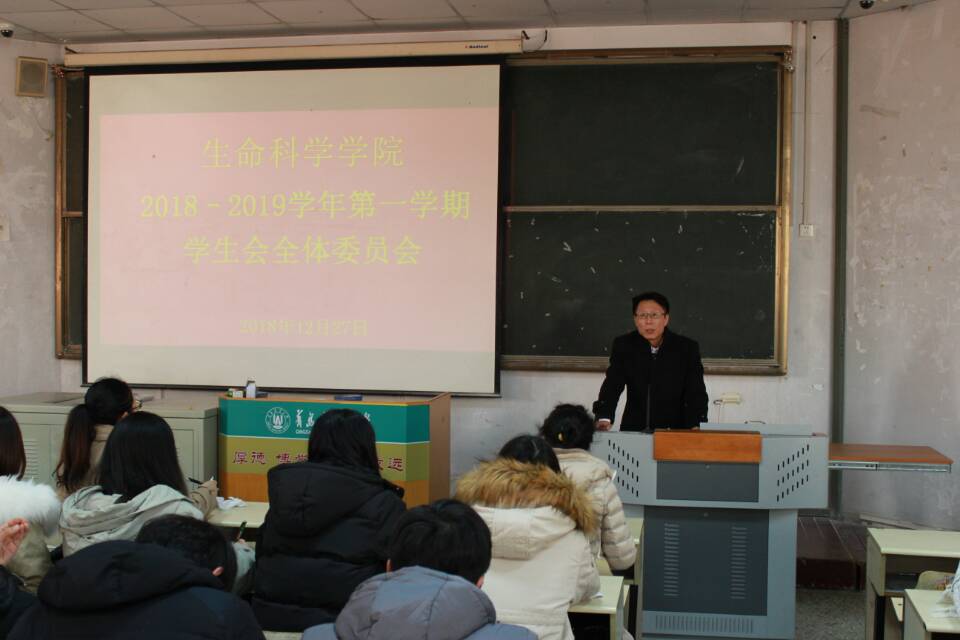 12月27日,青岛农业大学生命科学学院在教学区召开生命科学学院2018–2019学年第一学期学生会全体委员会。学院党委副书记、副院长初文杰,团委书记王敬,正科级辅导员祁琳,团委副书记许菲菲以及生命科学学院15届学生会全体成员参加会议。