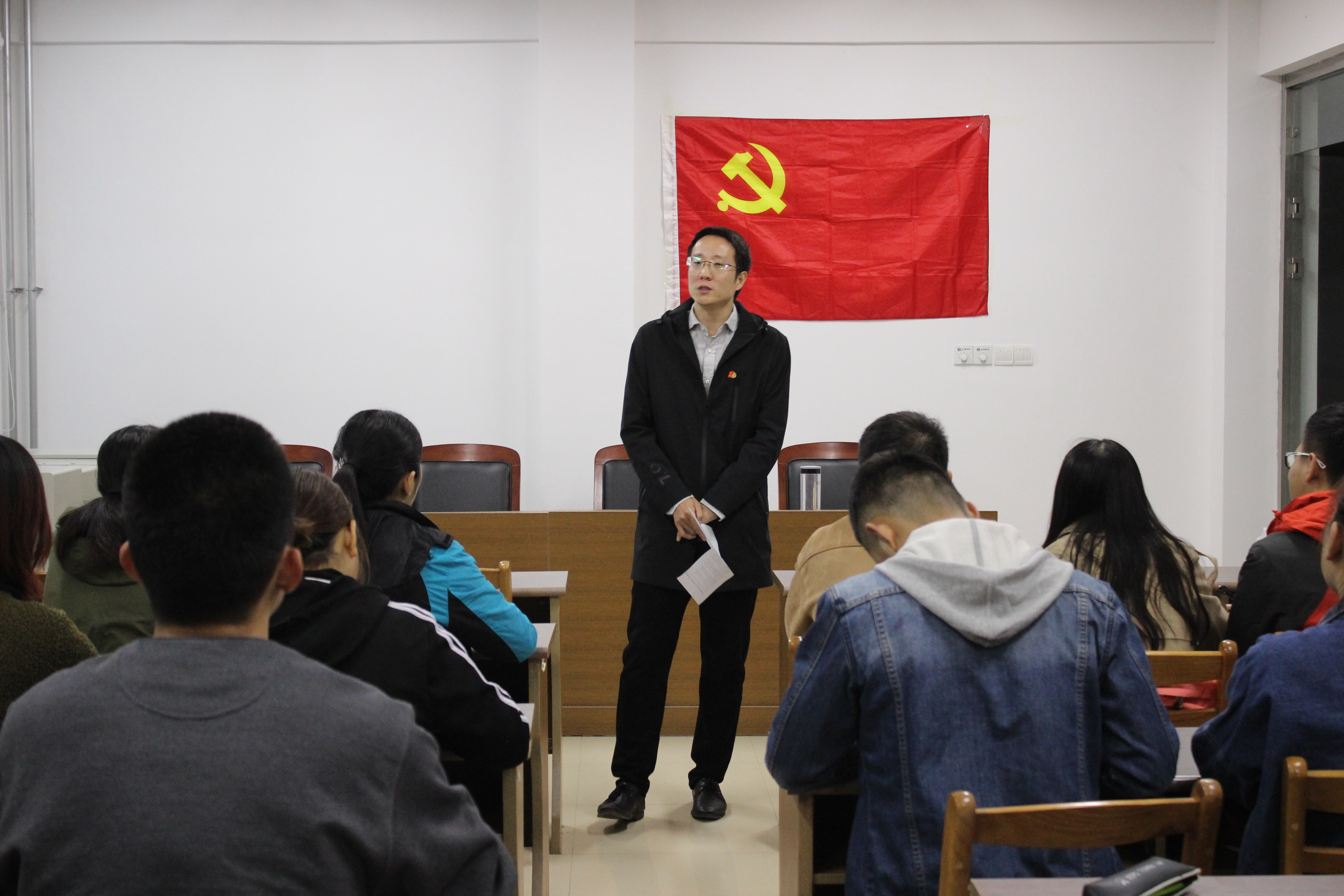 10月25日,经济学院(合作社学院)学生党支部在后勤综合楼会议室开展学习贯彻党的十九大精神主题党日活动,以加强学生党员的理想信念和思想政治教育,党支部书记贾光辉、刘翔宇及全体学生党员参加,活动由刘翔宇主持。