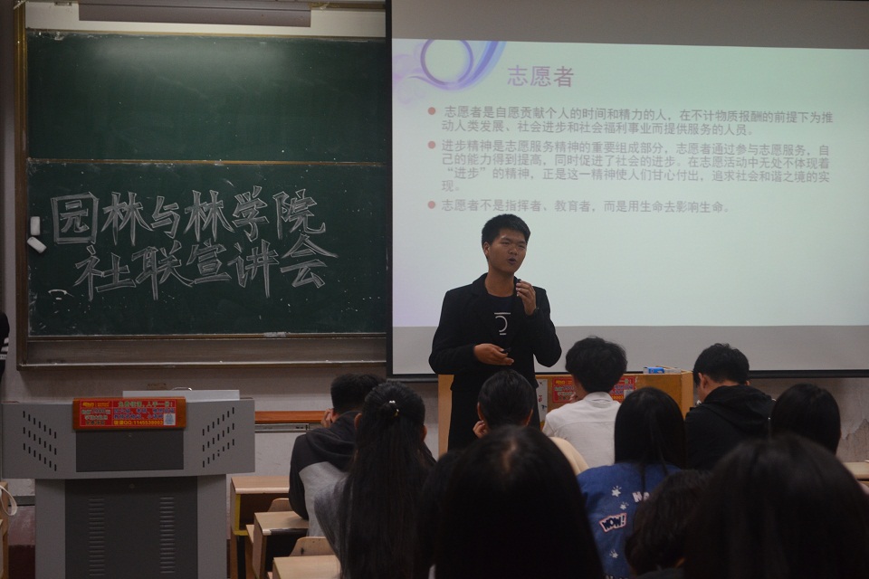 10月28日晚,青岛农业大学园林与林学院在教学区召开了2017届社联宣讲会。大会由园林与林学院社团联合会主席刘召锋主持。