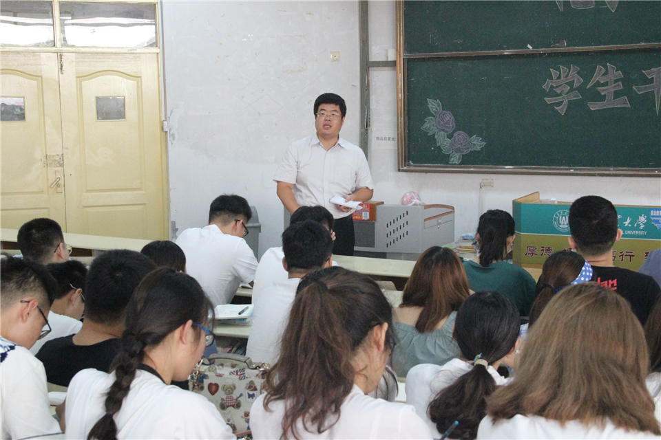 8月26日,青岛农业大学化学与药学院于教学区开展2018新学期学生干部培训会,学院党委副书记史雪辉,团委书记王海霞,正科级辅导员田保玲、杨冬冬出席,学生会全体成员、学生党员及各班班长、团支部书记参会。