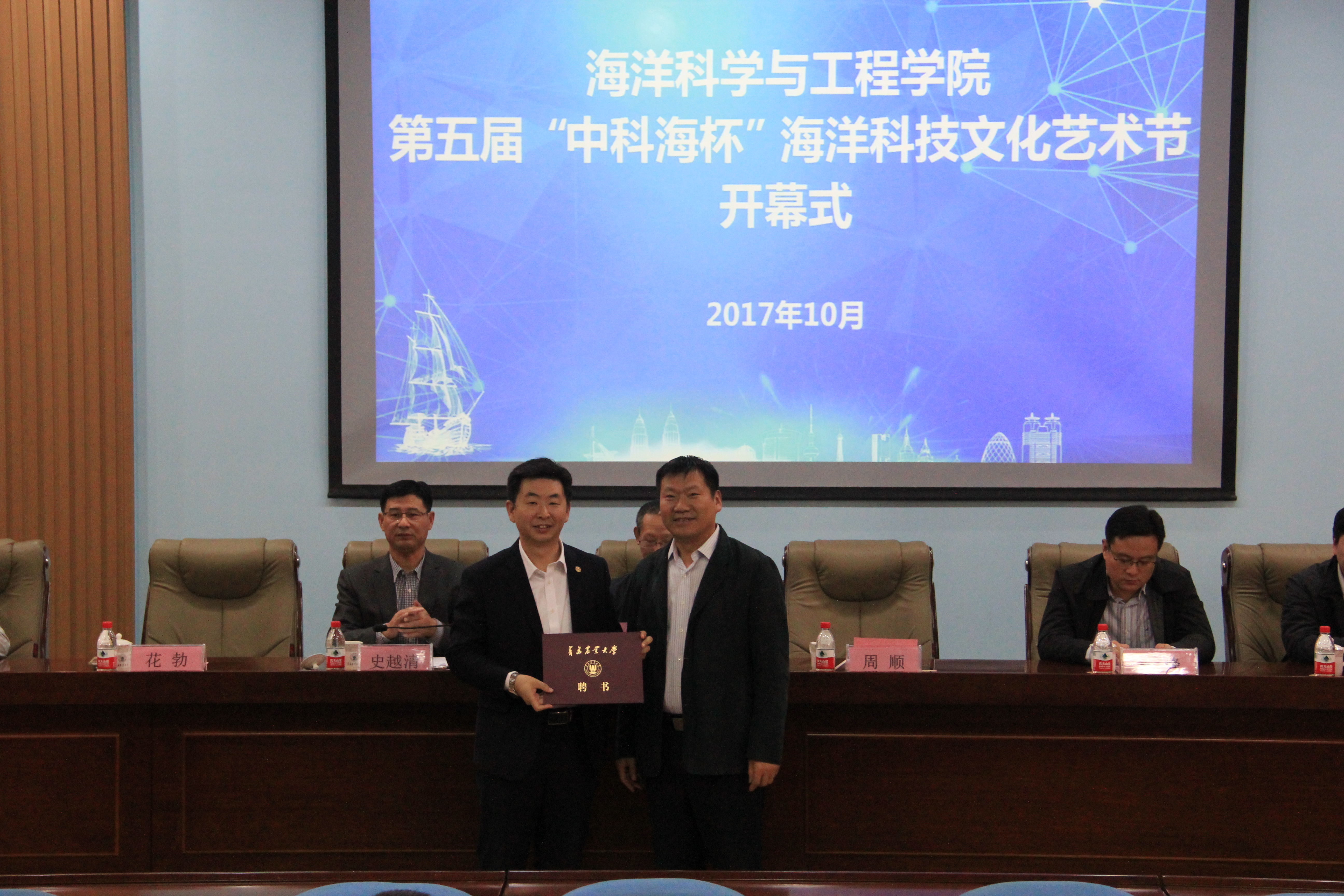 10月21日,海洋科学与工程学院第五届“中科海杯”海洋科技文化艺术节于学术会馆第三报告厅隆重开幕。山东省渔业技术推广站站长黄树庆、校团委书记王峰、人事处处长兼学院院长周顺、学院党总支书记史越清、山东中科海科技集团总经理花勃、山东中科海科技集团销售总监郑磊及学院领导班子出席开幕式,开幕式由学院党总支副书记刘兴华主持。