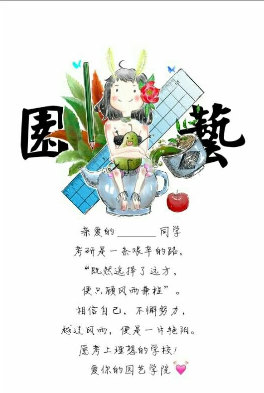 “杯水暖心,筑梦考研”是由学工办发起的一次暖心活动,这次活动不仅有学工办老师精心挑选的保温杯,还有宣传部干事龙延精心设计的专属于园艺学子的logo和学工办老师心里的话。