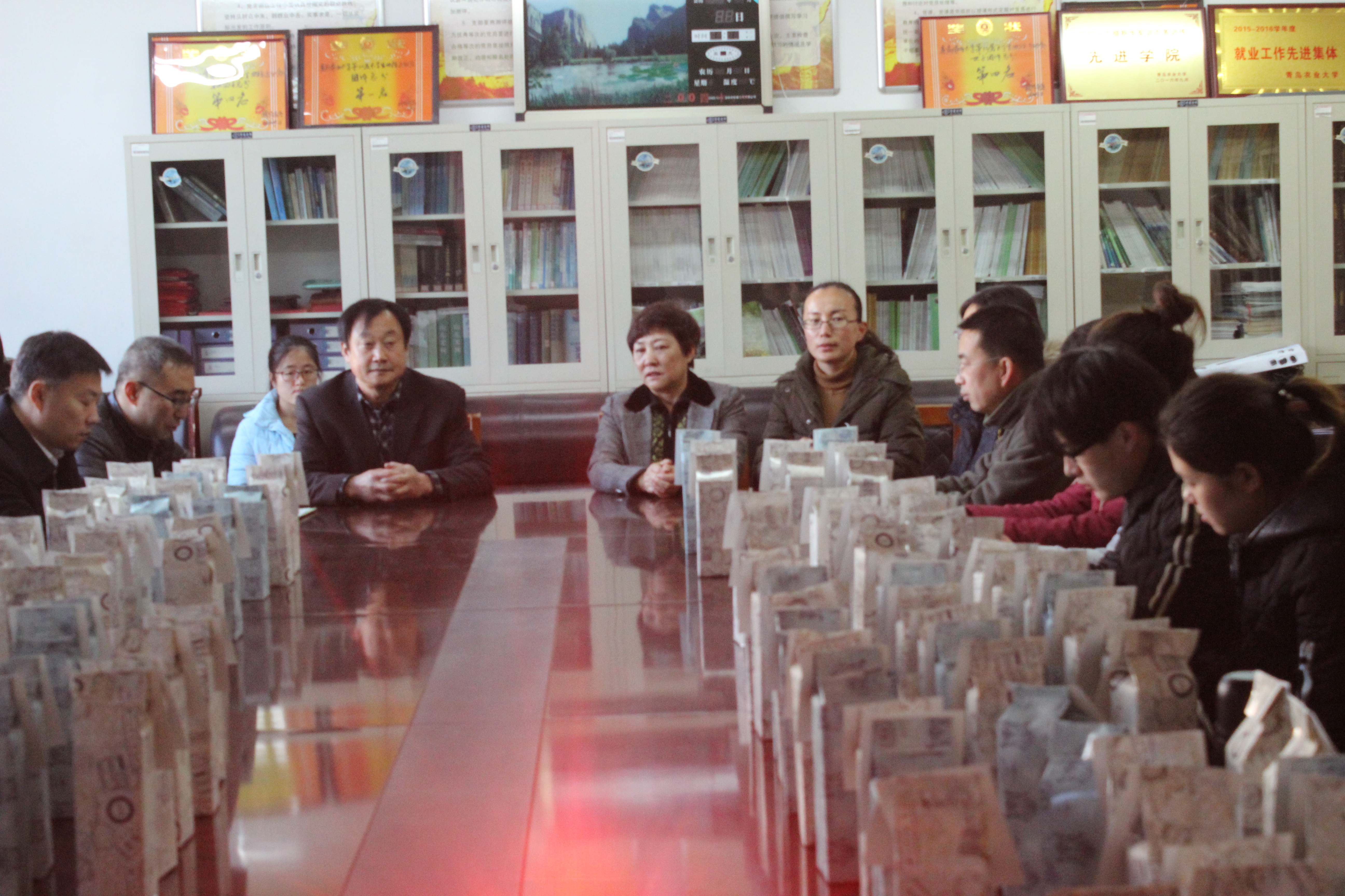 会议伊始,王书记表示,园艺学院的稳步上升的考研率一直以来是学院优良学风的表现,学院的领导和老师一直密切关注着考研学子的心理和备战状态,为了能够在寒冷的冬天给考研学子带来鼓励,学院领导、毕业班班主任和学工办老师经过长时间的讨论和准备,最终确定为每一位考研学子送去印有“园艺学院”的保温杯,希望能够在严冬中为他们送去温暖。同时,王书记指出,对于每一位已经签订就业协定的毕业生,学院也准备了专属的保温杯,并承诺只要签约就可以领到保温杯,也希望每一位毕业生能够积极的去应聘,找到适合自己的岗位。