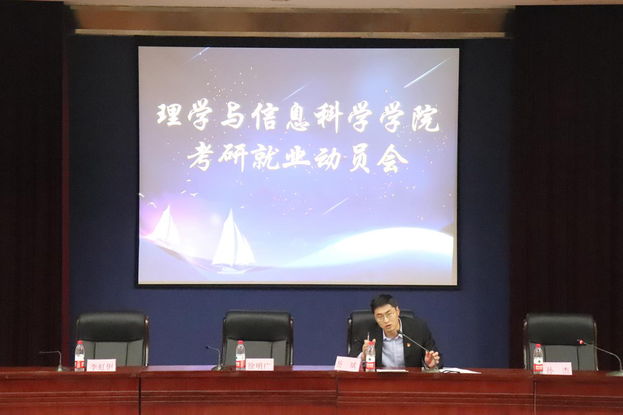 11月25日,青岛农业大学理学与信息科学学院于信息楼报告厅召开了2016级考研和就业动员大会。党委副书记、副院长岳斌,思途集团CEO兼执行总监徐明广,团委书记孙杰,辅导员李虹俐出席本次会议会议,会议由孙杰主持。