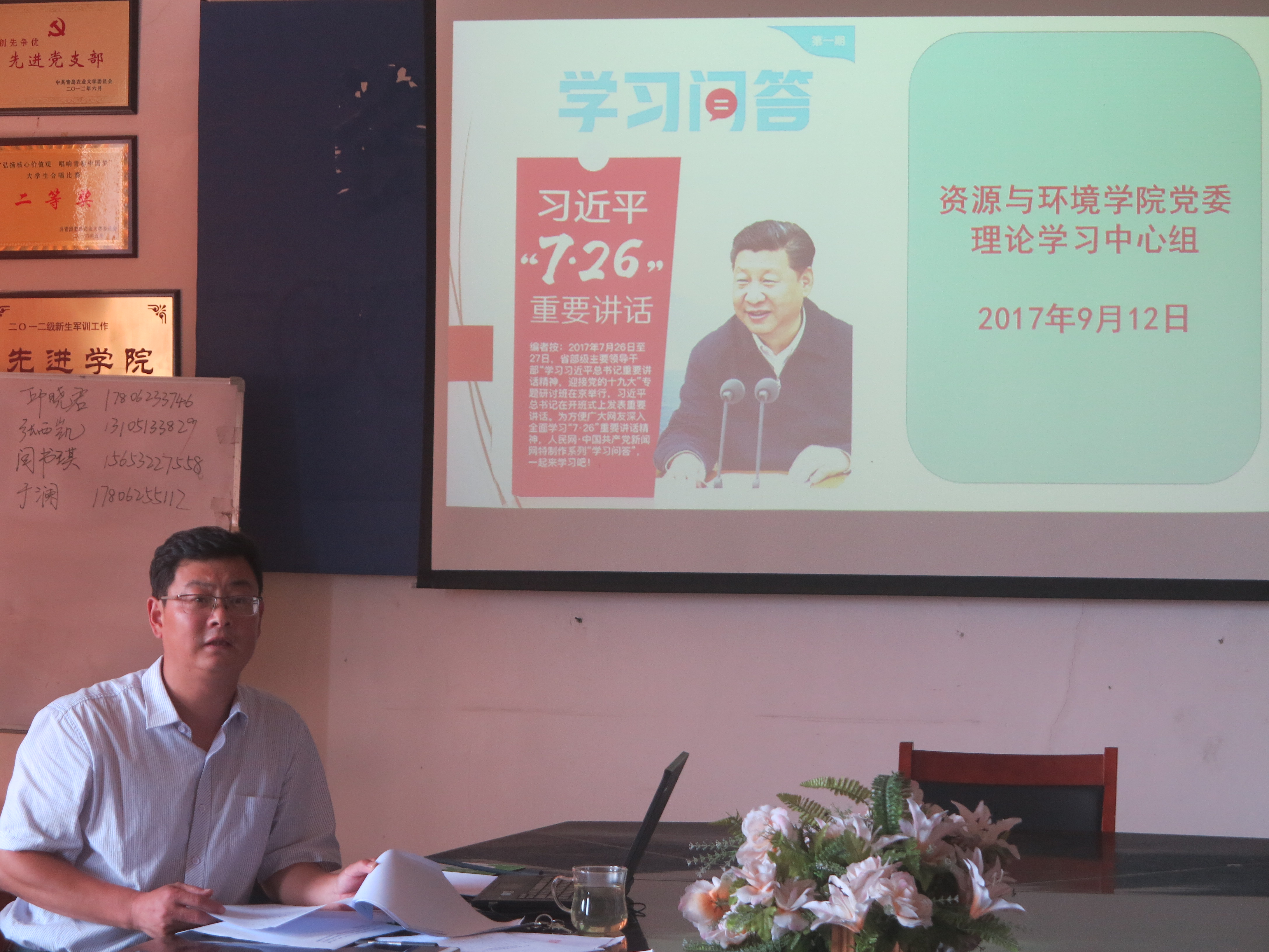 9月13日上午,资源与环境学院党委召开理论学习中心组学习扩大会,学习会由学院党委书记孙丙高主持,学院党委理论学习中心组成员、党支部书记、教工理论学习小组长参加学习。