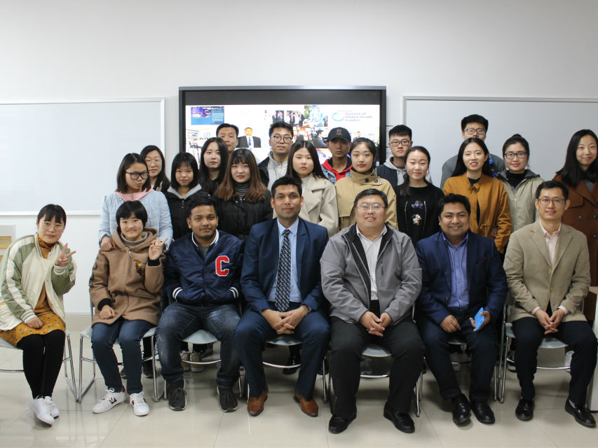 Shahbaz Muhammad是来自巴基斯坦的山东大学齐鲁医院医学博士。他详细介绍了自己在中国的求学经历和医学成就,对习近平总书记做出的“一带一路”规划表示十分赞同,认为巴基斯坦作为“一带一路”沿线国家应与中国在各方面进行紧密合作交流。随后,双方就高校间留学生学习问题进行讨论,并参观了校园和宿舍环境。