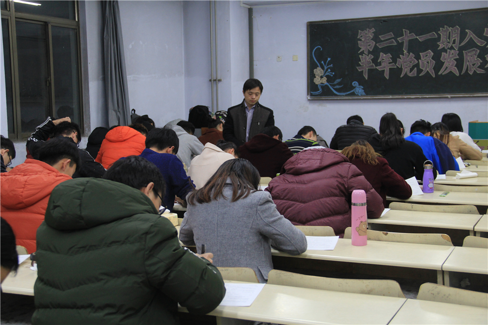 11月19日,青岛农业大学化学与药学于教学区举办第二十一期入党积极份子和2017下半年党员发展对象培训班结业考试,学院正科级辅导员杨冬冬担任本次培训结业考试监考人员。