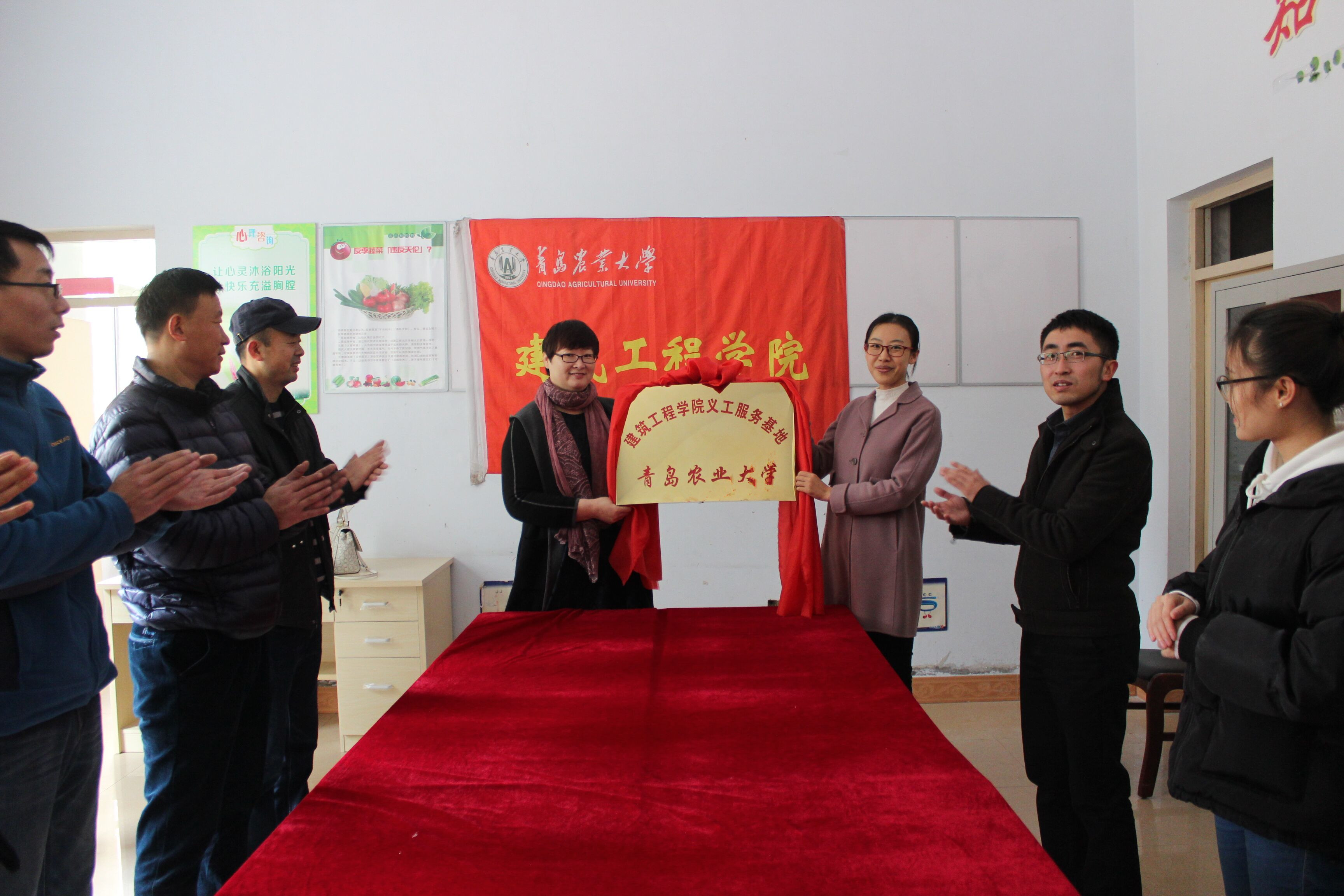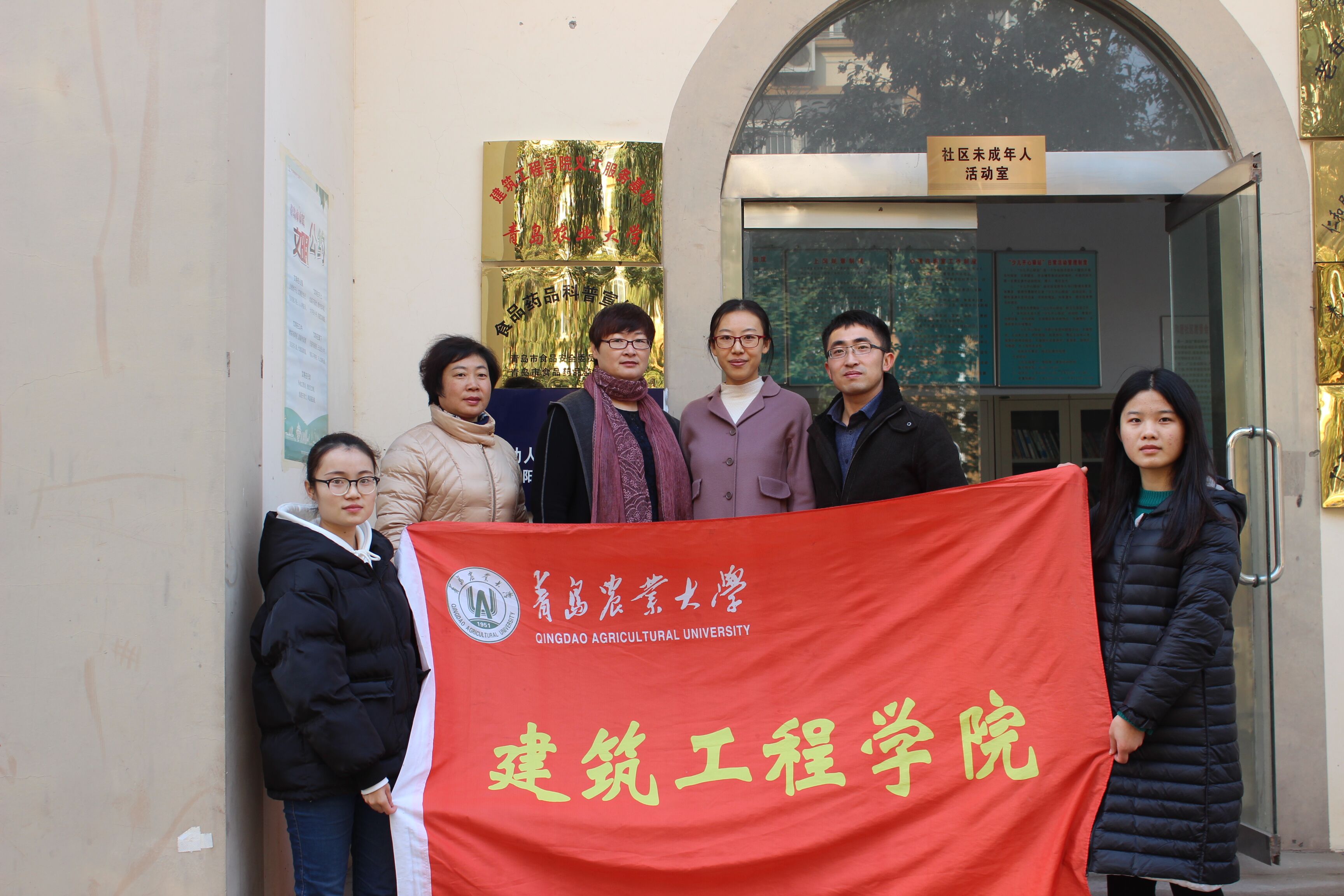 11月21日,青岛农业大学建筑工程学院义工服务基地在城阳区仁和居社区委员会举行挂牌仪式,院团委书记刘园园、辅导员江守林老师及仁和居社区居委会的工作人员参加了仪式。
